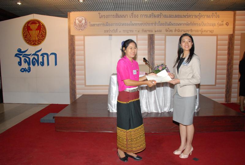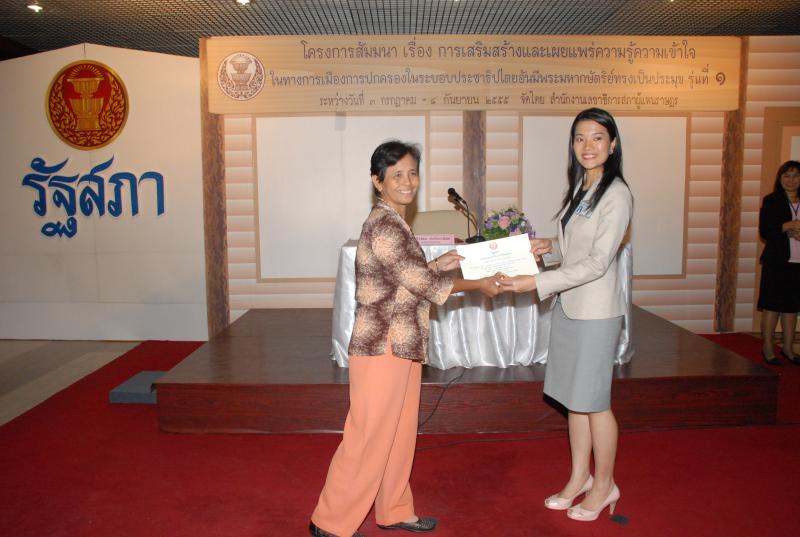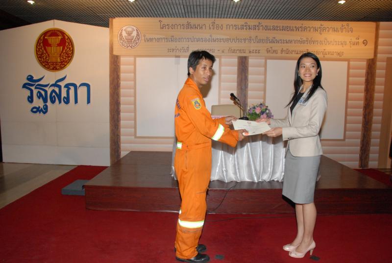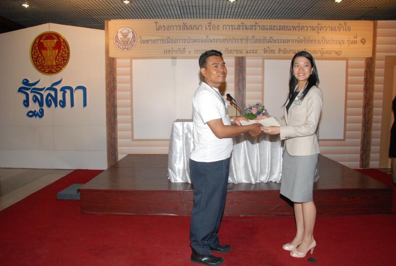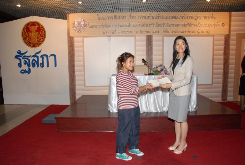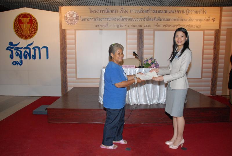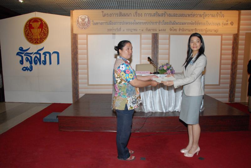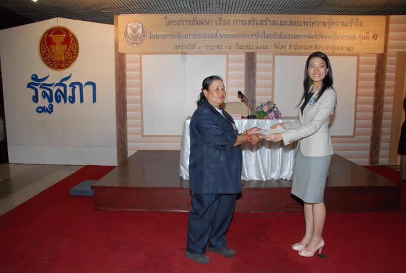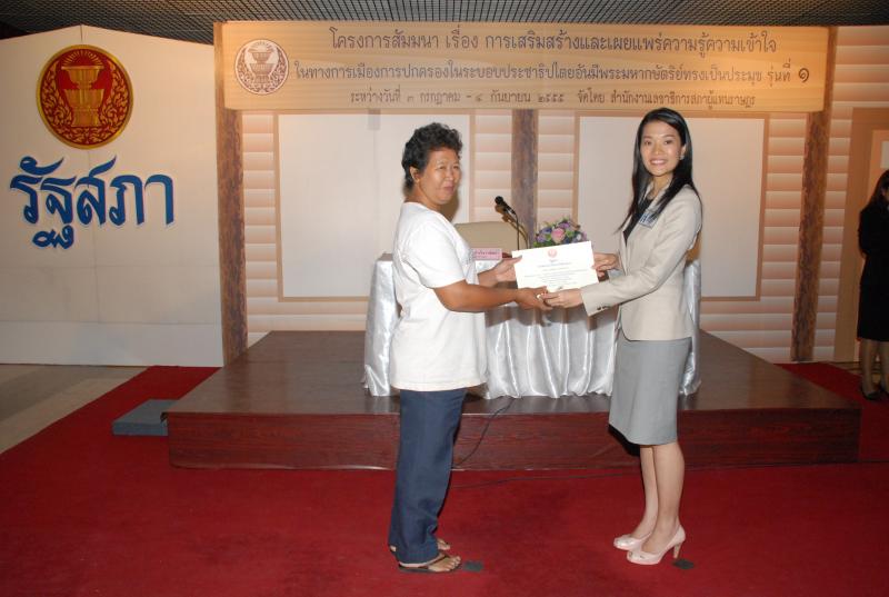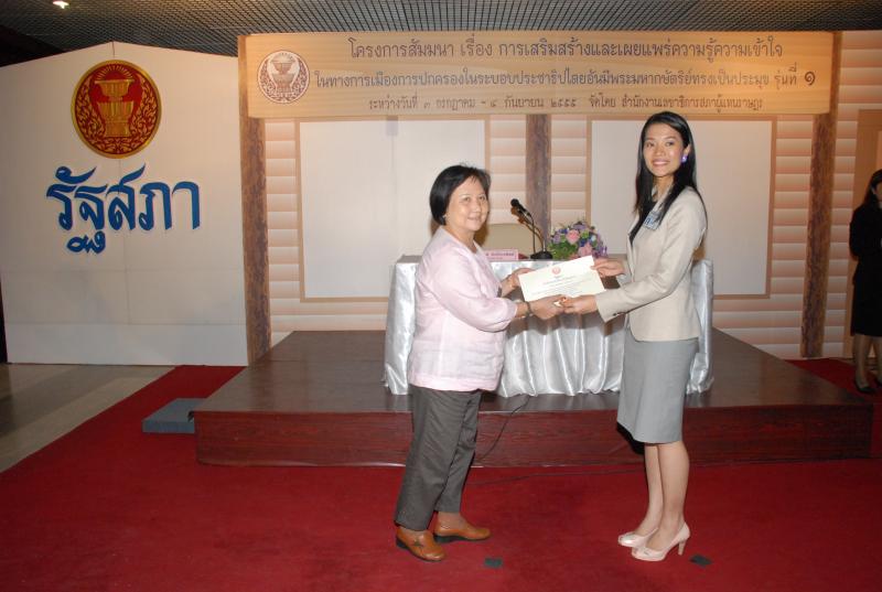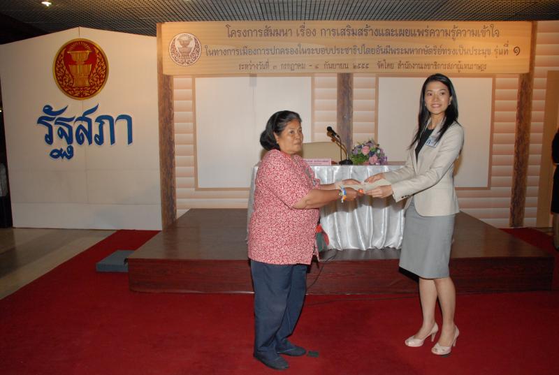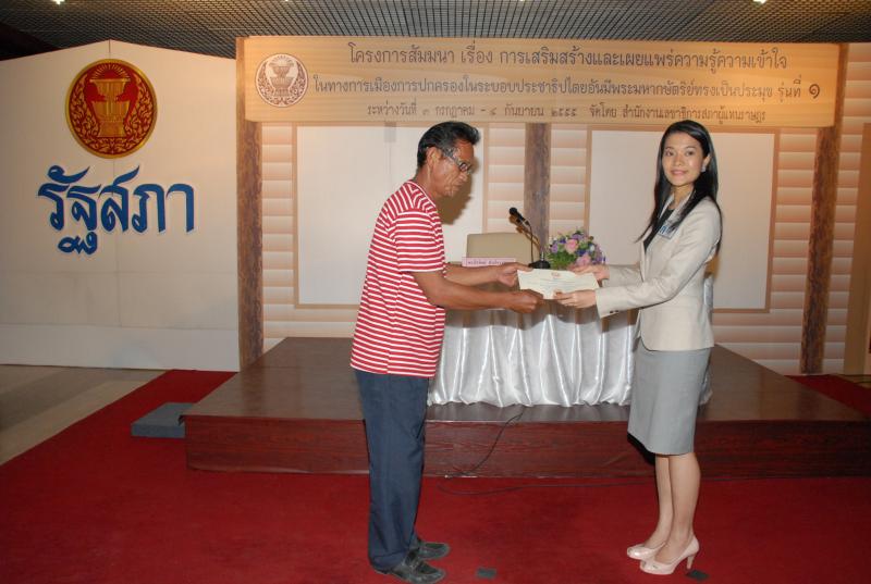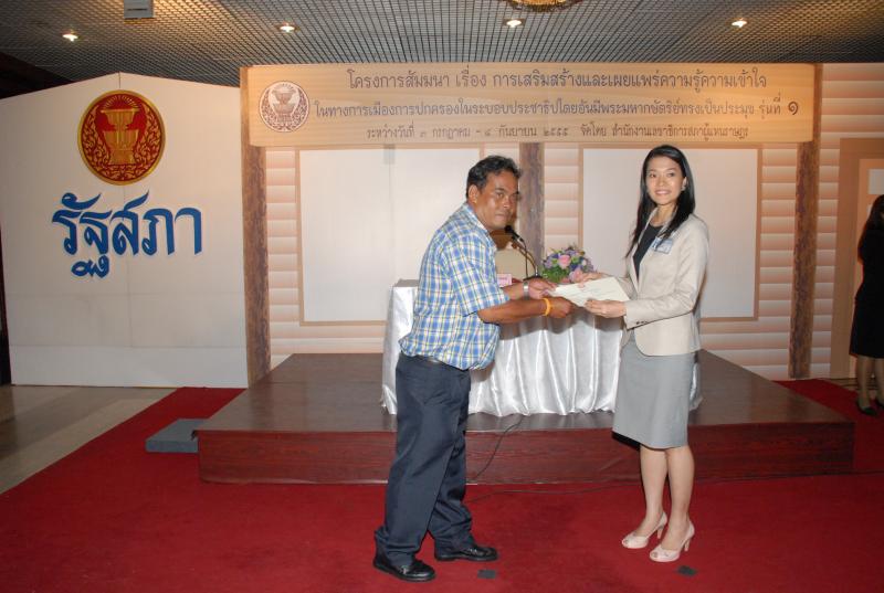 พิธีปิดการสัมมนาเรื่อง "การเสริมสร้างและเผยแพร่ความรู้ ความเข้าใจในทางการเมืองการปกครองในระบอบประชาธิปไตยอันมีพระมหากษัตริยทรงเป็นประมุข" รุ่นที่ ๑๒