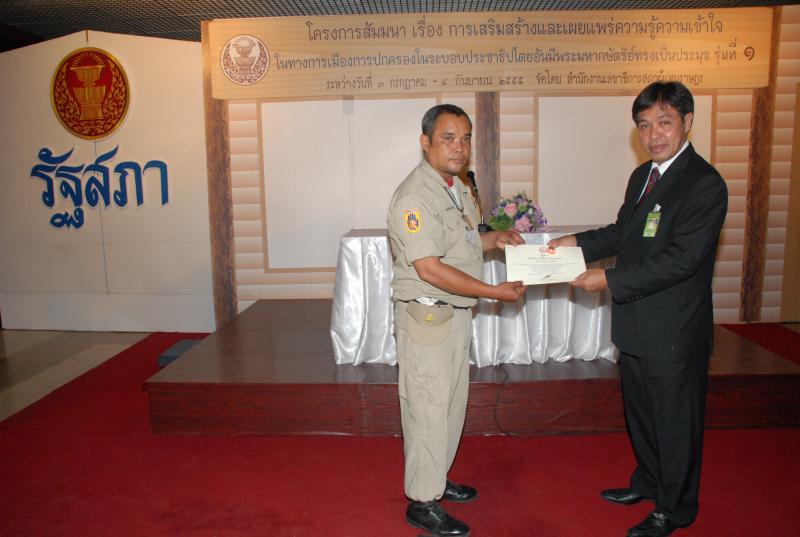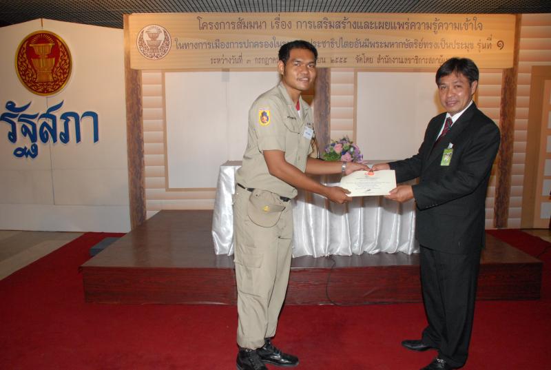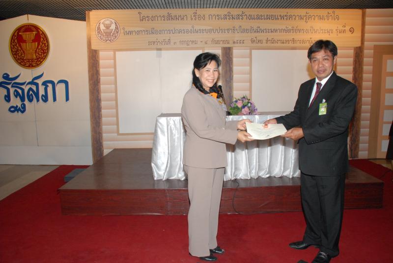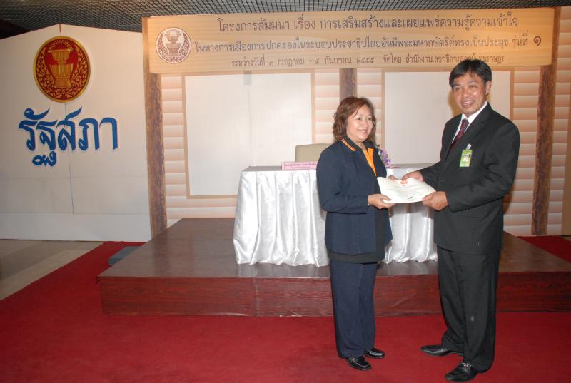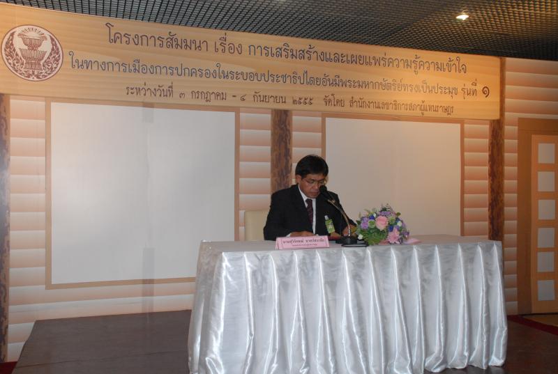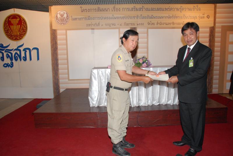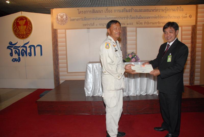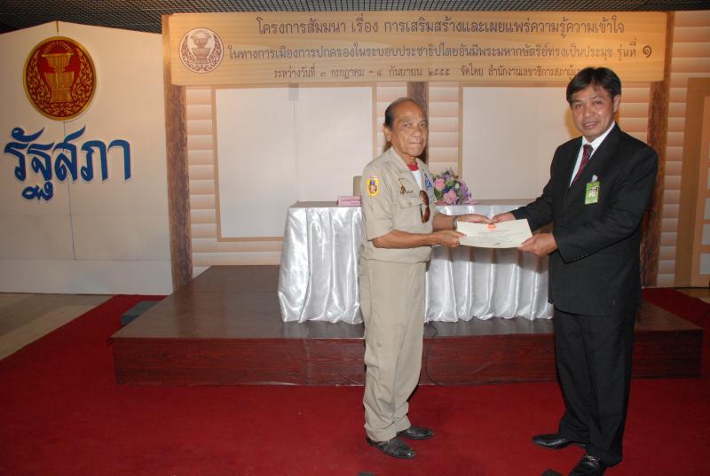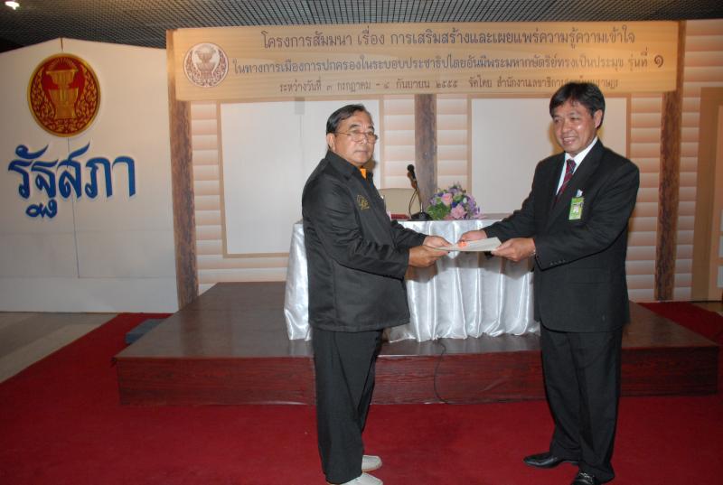 พิธีปิดการสัมมนาเรื่อง "การเสริมสร้างและเผยแพร่ความรู้ ความเข้าใจในทางการเมืองการปกครองในระบอบประชาธิปไตยอันมีพระมหากษัตริยทรงเป็นประมุข" รุ่นที่ ๑๓