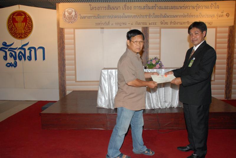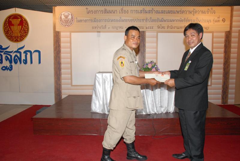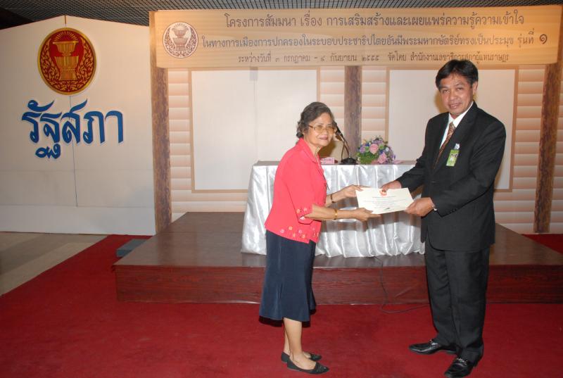 พิธีปิดการสัมมนาเรื่อง "การเสริมสร้างและเผยแพร่ความรู้ ความเข้าใจในทางการเมืองการปกครองในระบอบประชาธิปไตยอันมีพระมหากษัตริยทรงเป็นประมุข" รุ่นที่ ๑๔