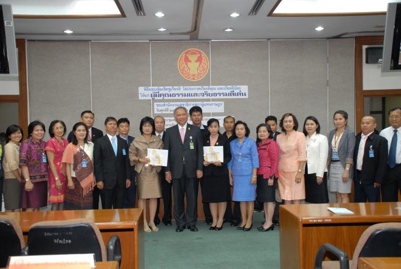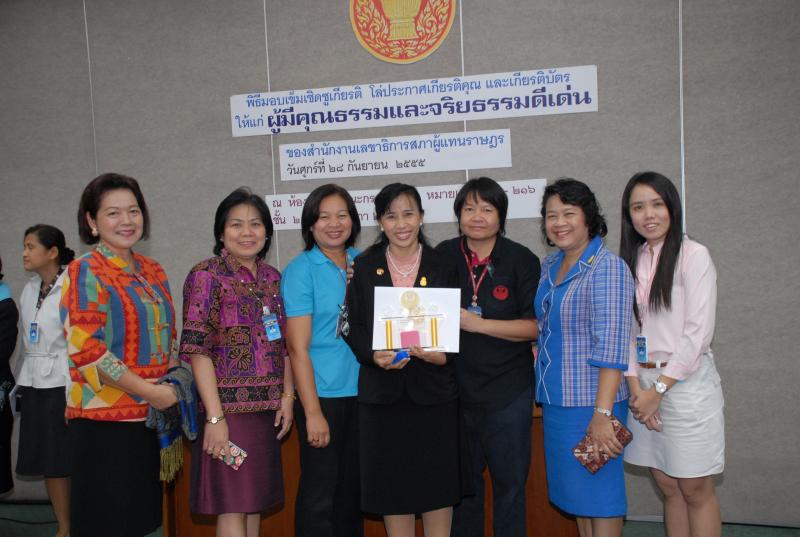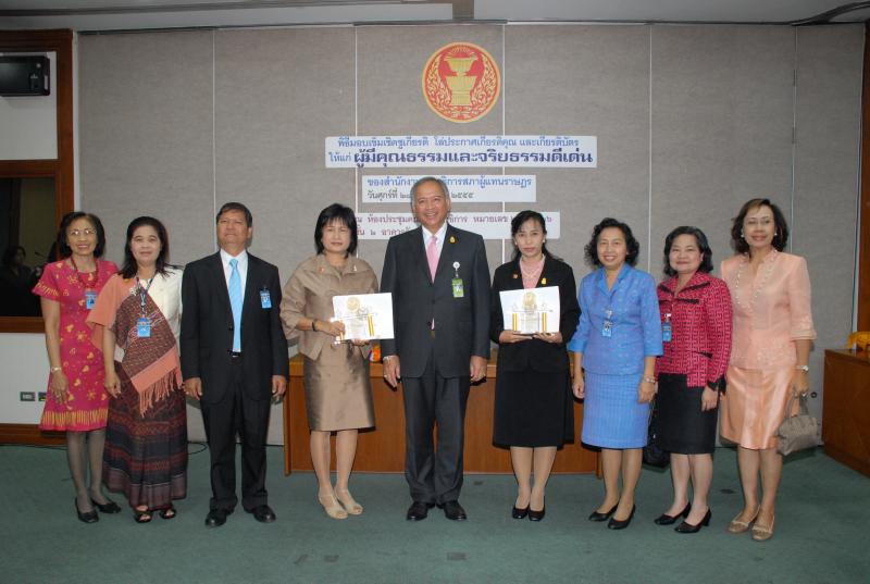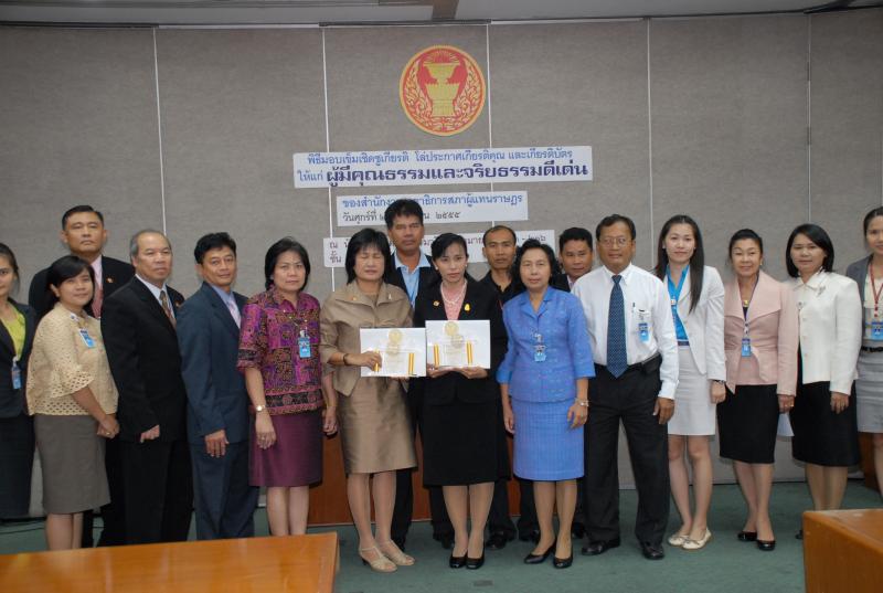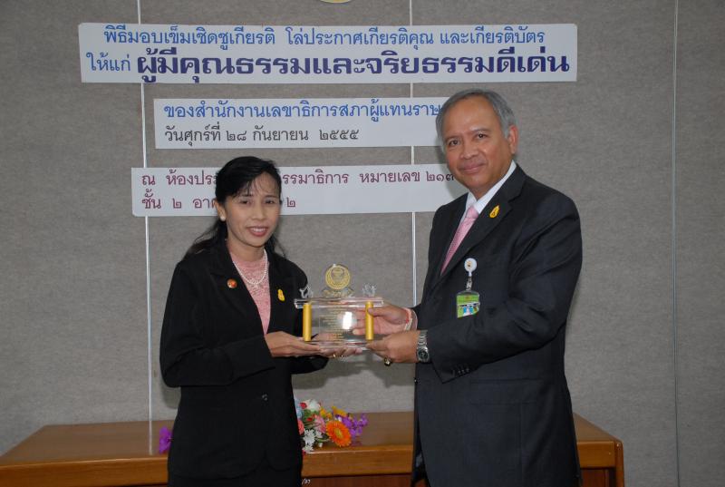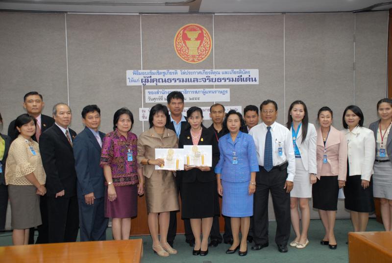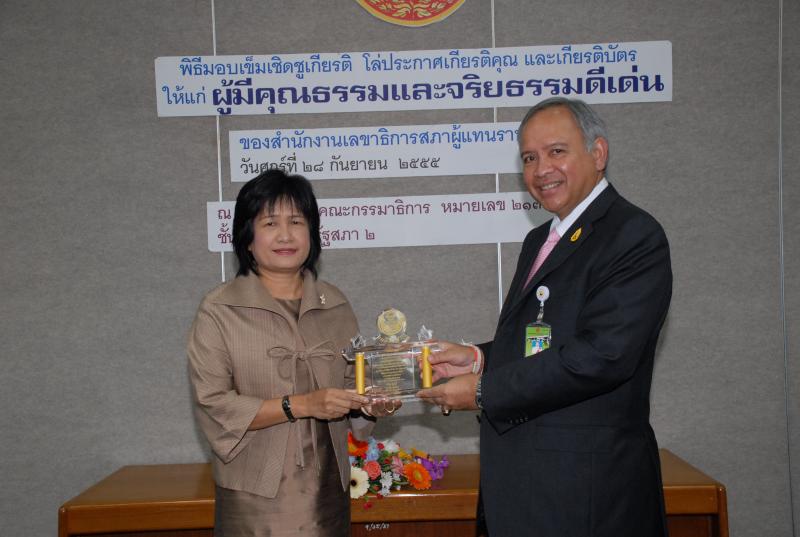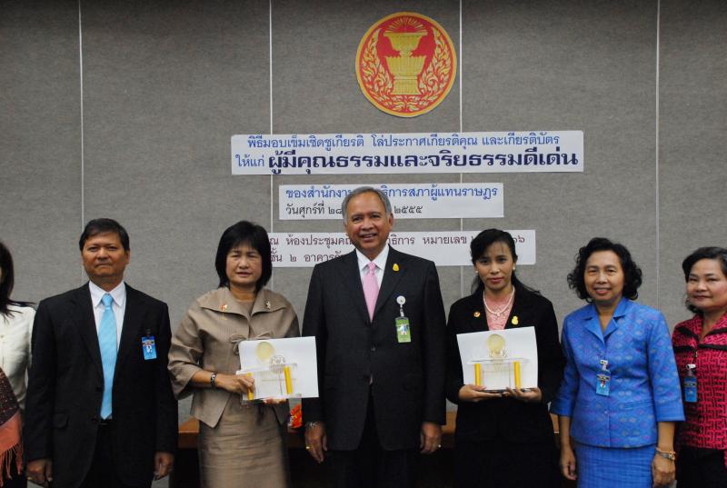พิธีมอบเข็มเชิดชูเกียรติ โล่ประกาศเกียรติคุณและเกียรติบัตร ให้แก่ผู้มีคุณธรรมและจริยธรรมดีเด่น ประจำปี ๒๕๕๕ ของสำนักงานเลขาธิการสภาผู้แทนราษฎร