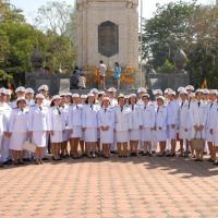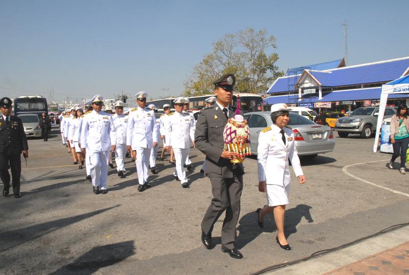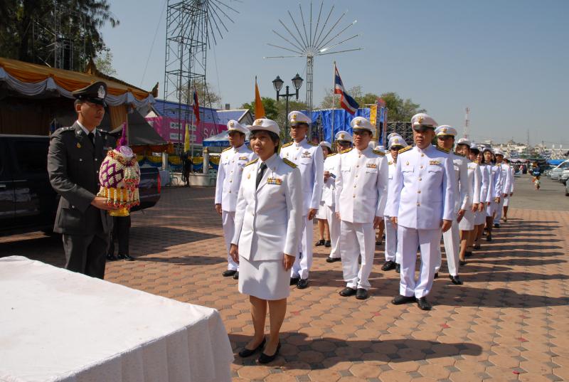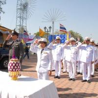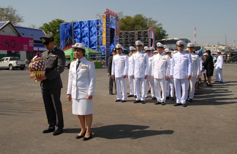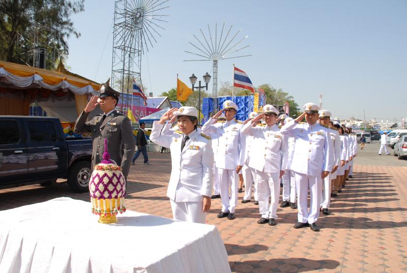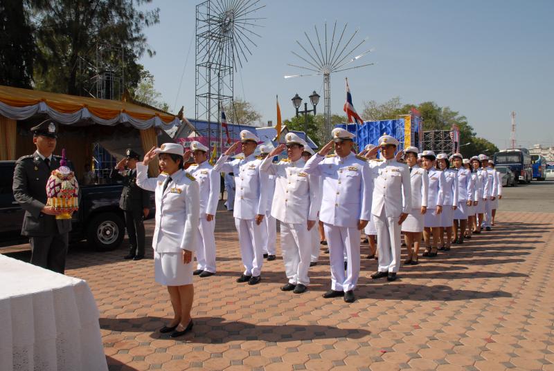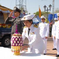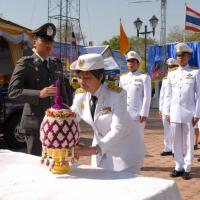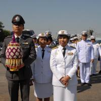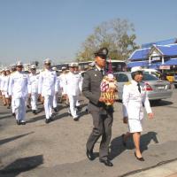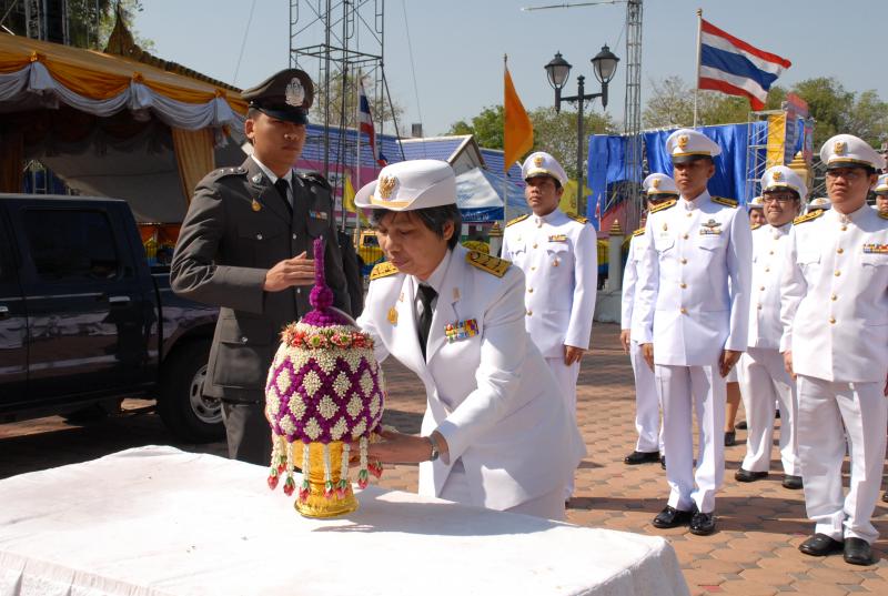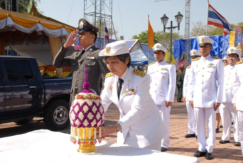 วางพานประดับพุ่มดอกไม้ถวายราชสักการะสมเด็จพระนเรศวรมหาราช