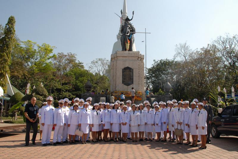 วันศุกร์ที่ ๑๘ มกราคม ๒๕๕๖  เวลา  ๑๐.๐๙ นาฬิกา  ณ  พระบรมราชานุสรณ์  อำเภอดอนเจดีย์  จังหวัดสุพรรณบุรี  นางบุญพา  เผ่าสำราญ  ผู้บังคัญบัญชากลุ่มงานทะเบียนประวัติและสถิติ  พร้อมด้วยข้าราชการสำนักงานเลขาธิการสภาผู้แทนราษฎร  นำพานประดับพุ่มดอกไม้ในนาม "สภาผู้แทนราษฎร" ถวายราชสักการะสมเด็จพระนเรศวรมหาราช  เนื่องในโอกาสวันยุทธหัตถีสมเด็จพระนเรศวรมหาราช