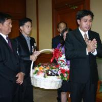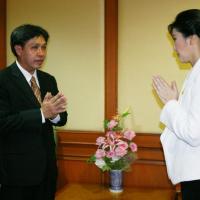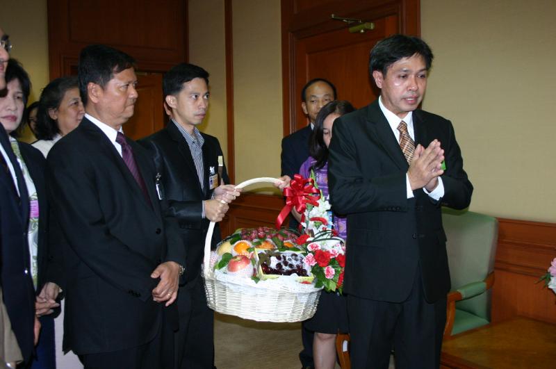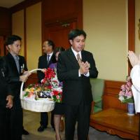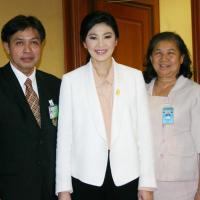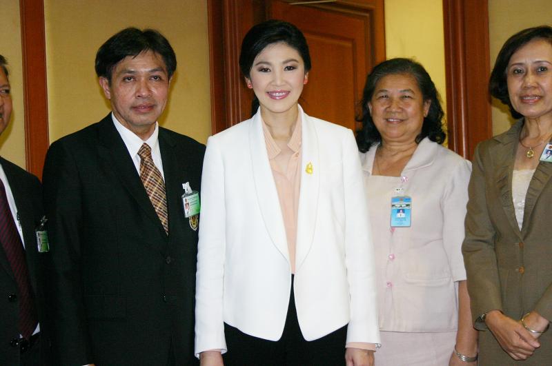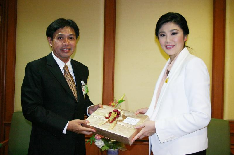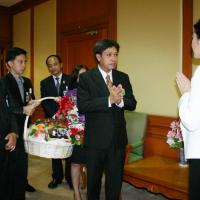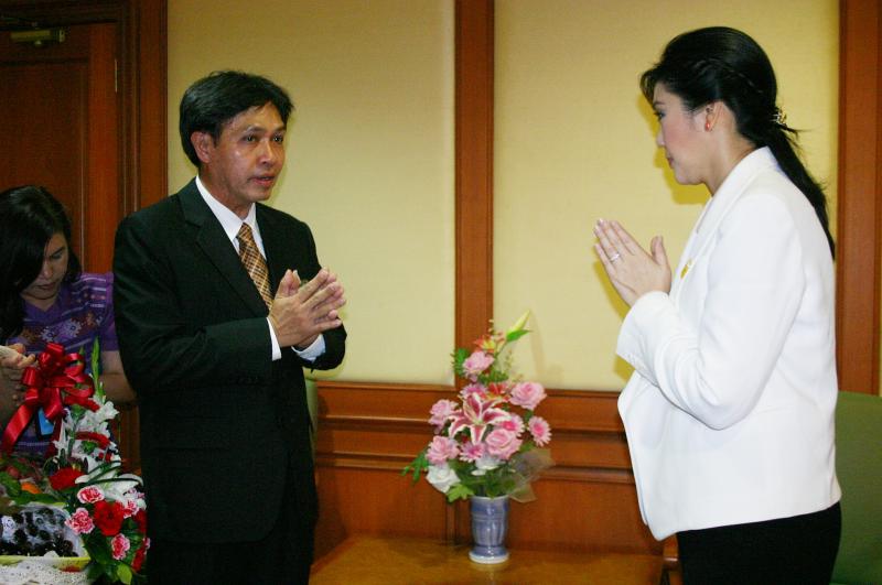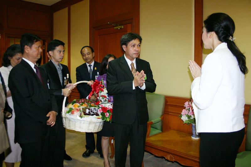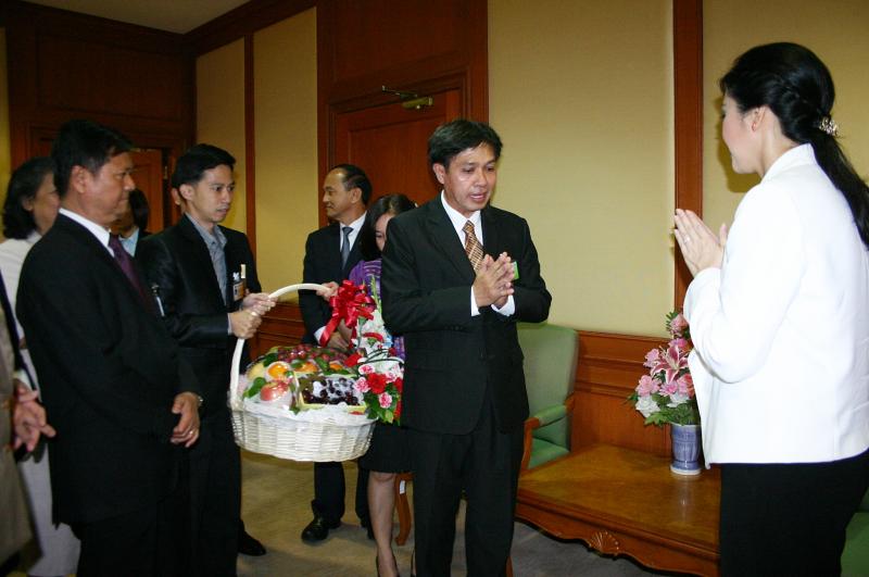 นายสุวิจักขณ์ นาควัชระชัย เลขาธิการสภาผู้แทนราษฎร พร้อมด้วยข้าราชการชั้นผู้ใหญ่ของสำนักงานเลขาธิการสภาผู้แทนราษฎร นำกระเช้าผลไม้อวยพรปีใหม่นางสาวยิ่งลักษณ์ ชินวัตร นายกรัฐมนตรี