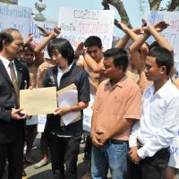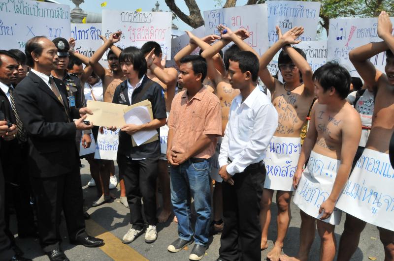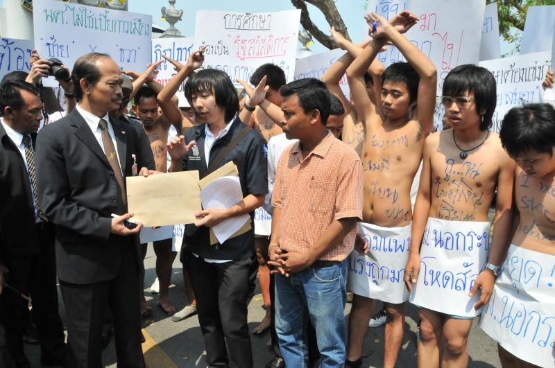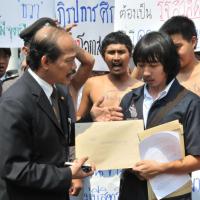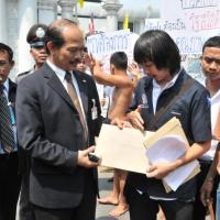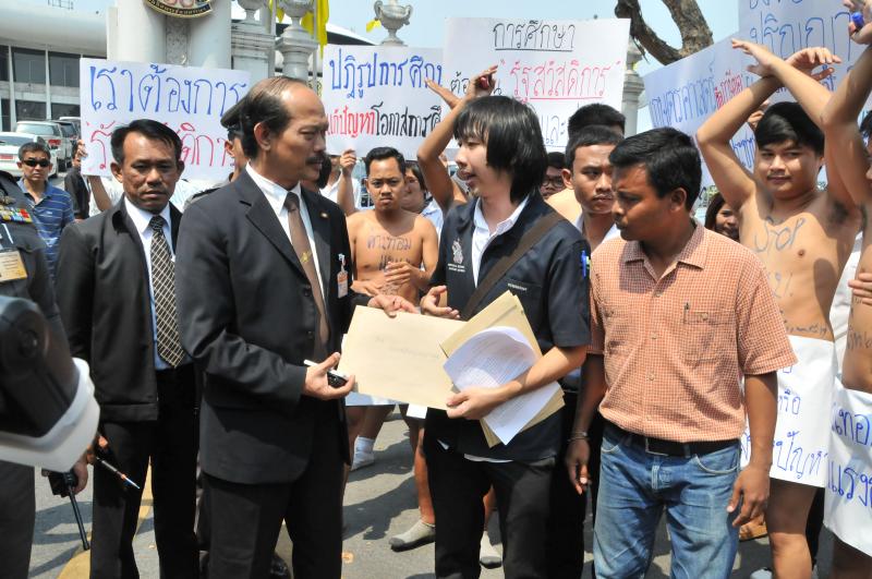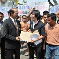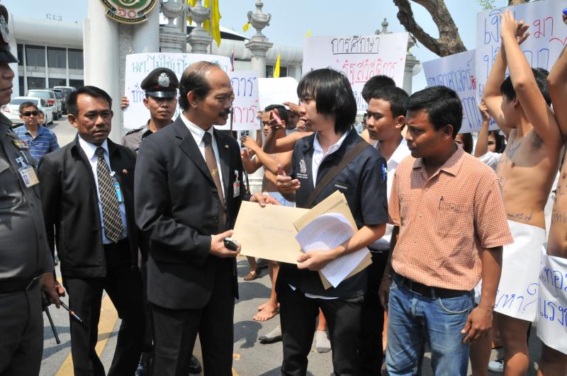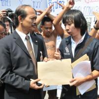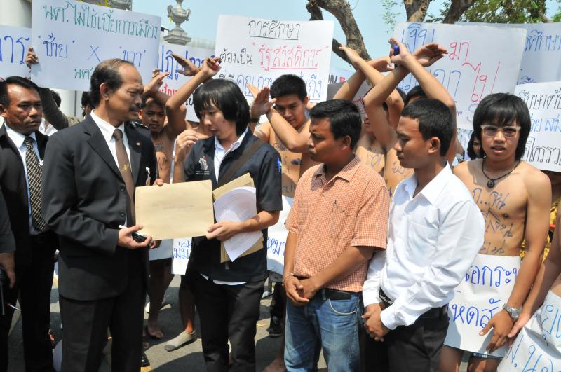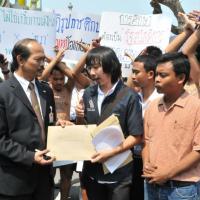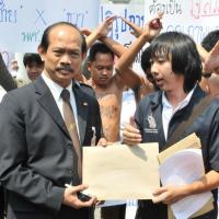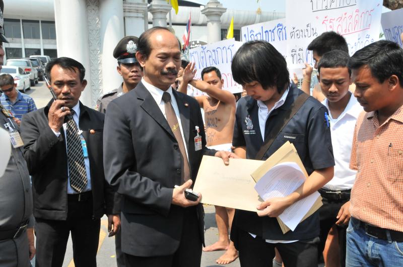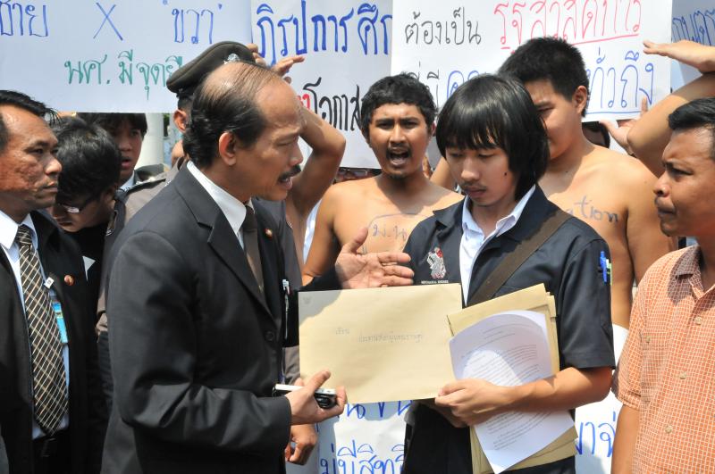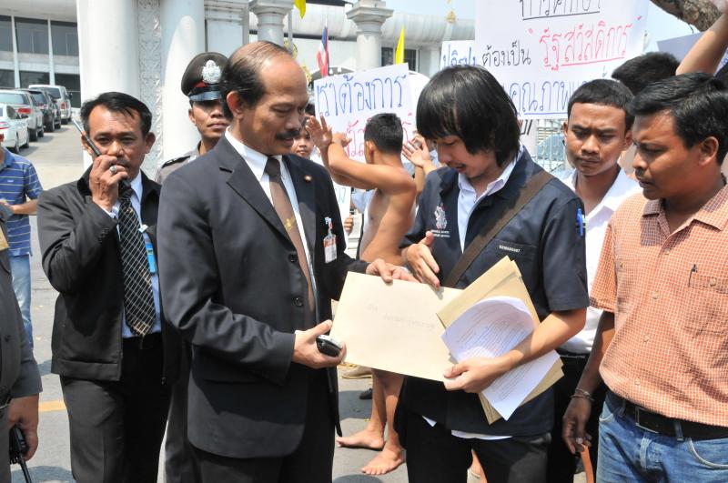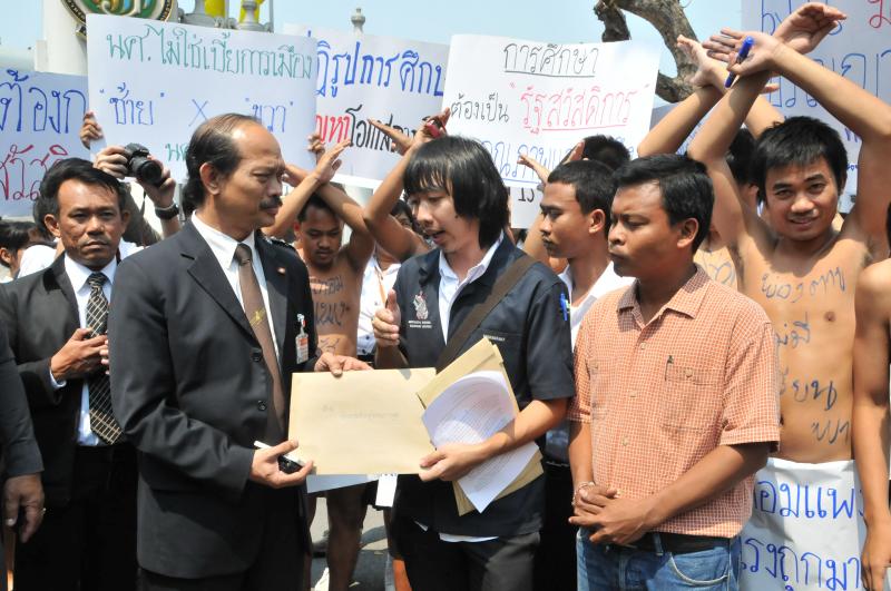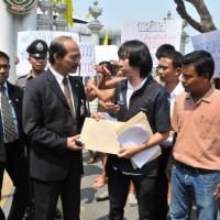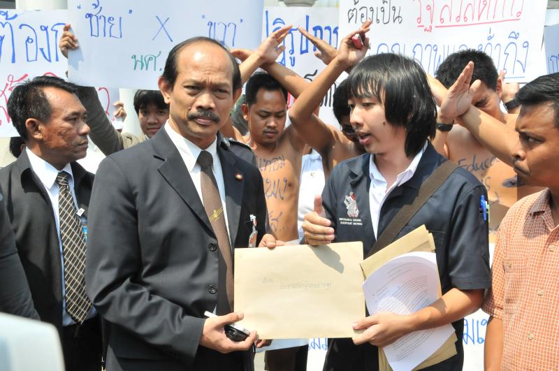 นายวัฒนา เซ่งไพเราะ โฆษกประธานสภาผู้แทนราษฎร รับยื่นหนังสือจากตัวแทนแนวร่วมนิสิตนักศึกษาคัดค้านการนำมหาวิทยาลัยออกนอกระบบ