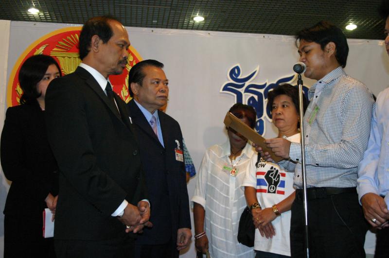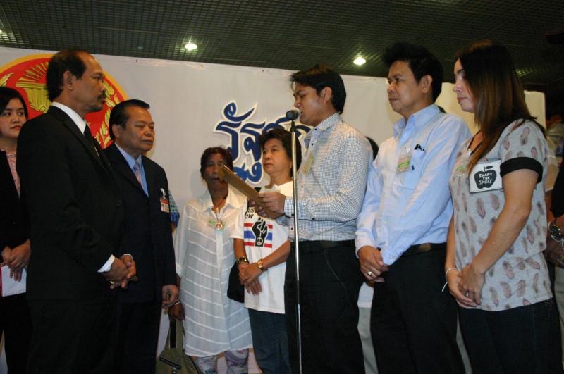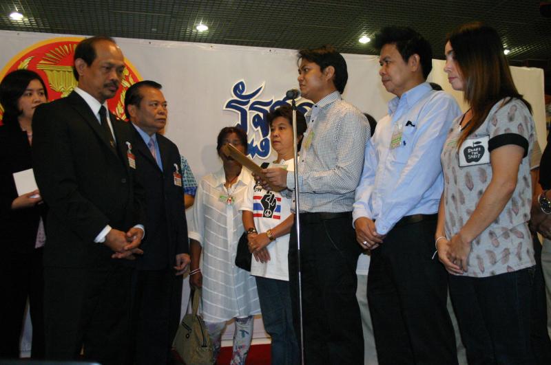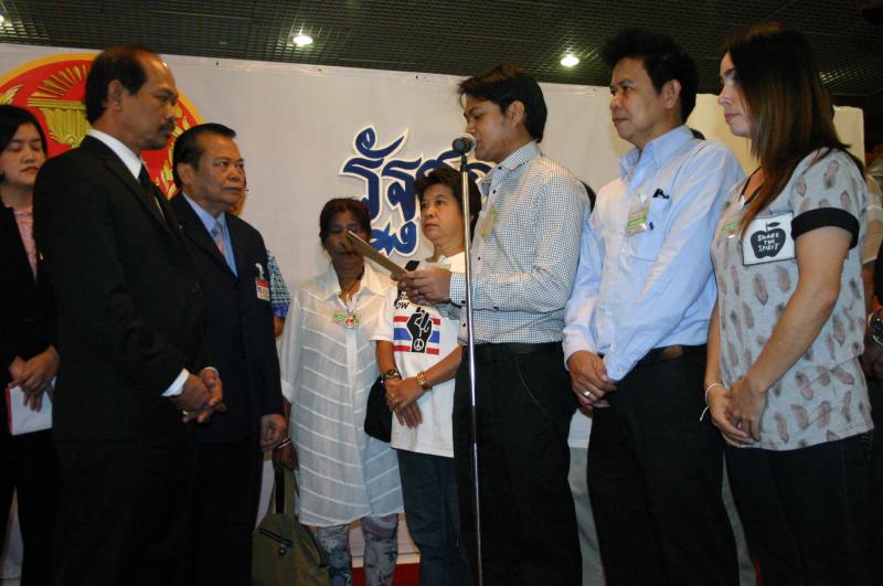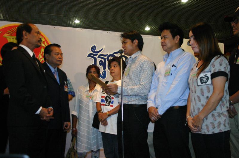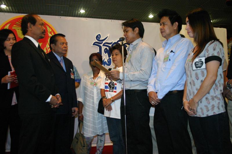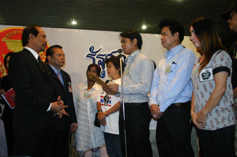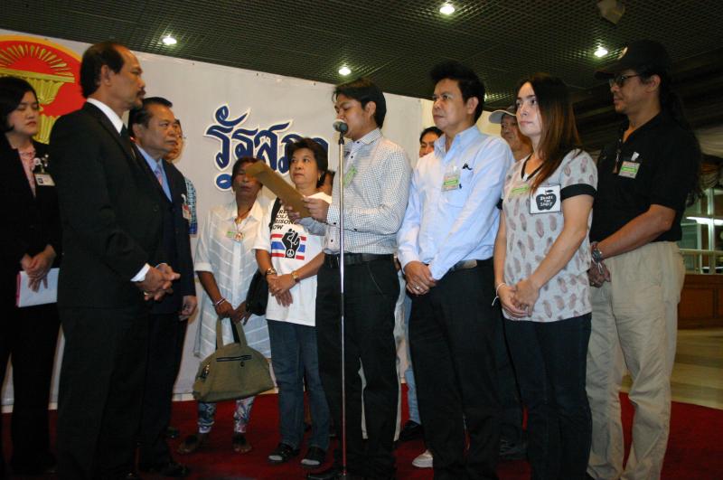 | วันพฤหัสบดีที่ ๑ สิงหาคม ๒๕๕๖ เวลา ๑๐.๓๕ นาฬิกา ณ บริเวณห้องโถง อาคารรัฐสภา ๑ นายวัฒนา เซ่งไพเราะ โฆษกประธานสภาผู้แทนราษฎร รับการยื่นหนังสือจาก นายชัยนรินทร์ กุหลาบอ่ำ และคณะ ที่ต้องการทราบสอบถามความคืบหน้าจาก นายสมศักดิ์ เกียรติสุรนนท์ ประธานสภาผู้แทนราษฎร กรณีผลการสอบจริยธรรม ส.ส.พรรคประชาธิปัตย์ จากการก่อเหตุความวุ่นวาย ไม่เคารพข้อบังคับการประชุมสภา ในการพิจารณาร่าง พ.ร.บ.ว่าด้วยความปรองดองแห่งชาติ เมื่อวันที่ ๓๐-๓๑ พ.ค. ๒๕๕๕ ส่งผลให้สภาผู้แทนราษฎรเสื่อมเสียเกียรติไปทั่วโลก |