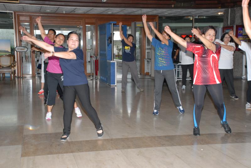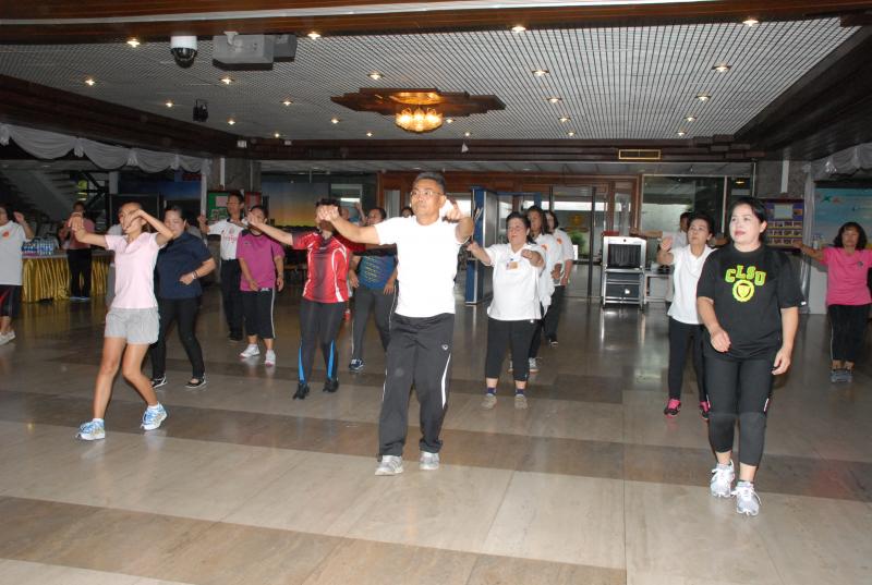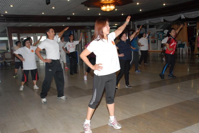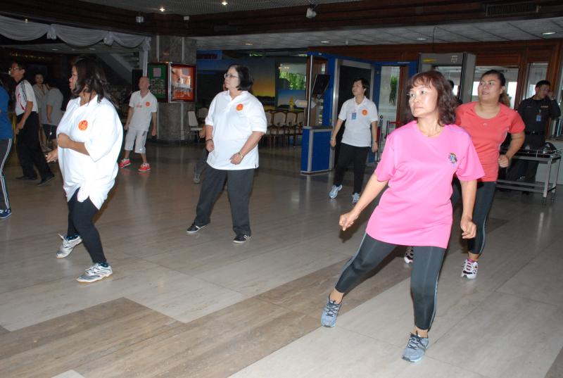 บรรยากาศ การออกกำลังกายเต้นแอโรบิค วันจันทร์ที่ ๑๙ สิงหาคม ๒๕๕๖