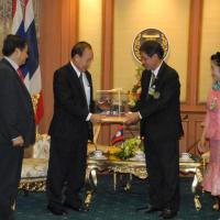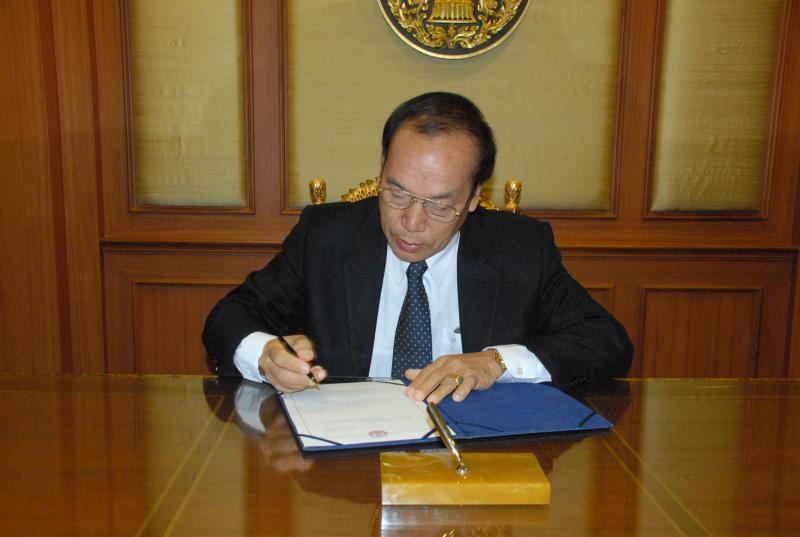 นายสุวิจักขณ์ นาควัชระชัย เลขาธิการสภาผู้แทนราษฎร ให้การรับรอง ดร.อุ่นแก้ว วุทิลาด หัวหน้าห้องว่าการสภาแห่งชาติลาว