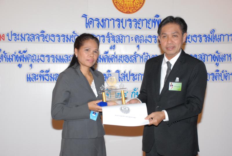 วันอังคารที่ ๒๔ กันยายน ๒๕๕๖ เวลา ๑๓.๓๐ นาฬิกา  ณ บริเวณห้องโถง  อาคารรัฐสภา ๑ นายสุวิจักขณ์ นาควัชระชัย เลขาธิการสภาผู้แทนราษฎร เป็นประธานในพิธีมอบเข็มเชิดชูเกียรติ โล่ประกาศเกียรติคุณและเกียรติบัตร ให้แก่ข้าราชการรัฐสภาสามัญ พนักงานราชการและลูกจ้างประจำผู้มีคุณธรรมและจริยธรรมดีเด่น โดยบุคคลที่ได้รับคัดเลือกจากคณะกรรมการขับเคลื่อนและผลักดันการปฏิบัติตามประมวลจริยธรรมข้าราชการรัฐสภา ที่มีนายนุกูล สัญฐิติเสรี รองเลขาธิการสภาผู้แทนราษฎร เป็นประธานคณะกรรมาการ ให้เป็นข้าราชการผู้มีคุณธรรมและจริยธรรมดีเด่นของ สำนักงานเลขาธิการสภาผู้แทนราษฎร ประจำปีงบประมาณ พ.ศ.๒๕๕๖ ตำแหน่งประเภทอำนวยการ ได้แก่ นางสายทิพย์ เชาวลิตถวิล ผู้อำนวยการสำนักองค์การรัฐสภาระหว่างประเทศ ตำแหน่งประเภทวิชาการ ได้แก่นางสาวพรทิพย์ บูรณะขจรกิจ ผู้บังคับบัญชากลุ่มงานพัฒนาระบบการบริหารทรัพยากรบุคคล สำนักงานเลขานุการ ก.ร. ตำแหน่งประเภททั่วไป ได้แก่ นางสาววิวัทณา คุ้มภัยรันต์ เจ้าพนักงานธุรการชำนาญงาน กลุ่มงานกระทู้ถาม สำนักการประชุม พนักงานราชการ ได้แก่ นายบุญกิจ เอี้อวิริยะวิทย์ พนักงานเรียงพิมพ์ กลุ่มงานโรงพิมพ์และสำเนาสิ่งพิมพ์ สำนักงานพิมพ์ และลูกจ้างประจำ ได้แก่ นายสำลี สร้างนอก พนักงานขับรถยนต์ กลุ่มงานยานพาหนะ สำนักการคลังและงบประมาณ