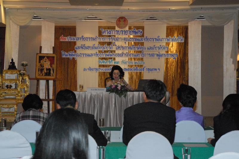 วันจันทร์ที่ ๒๓ กันยายน ๒๕๕๖ ณ ห้องกรุงธนบอลส์รูม โรงแรมรอยัลริเวอร์ กรุงเทพฯ สำนักงานเลขาธิการสภาผู้แทนราษฎร จัดโครงการบรรยายพิเศษ เรื่องประมวลจริยธรรมข้าราชการรัฐสภา : คุณธรรมและจริยธรรมในการดำเนินชีวิตและพิธีมอบเข็มเชิดชูเกียรติ โล่ประกาศเกียรติคุณ และเกียรติบัตร ให้แก่ผู้มีคุณธรรมและจริยธรรมดีเด่นของสำนักงานเลขาธิการสภาผู้แทนราษฎร