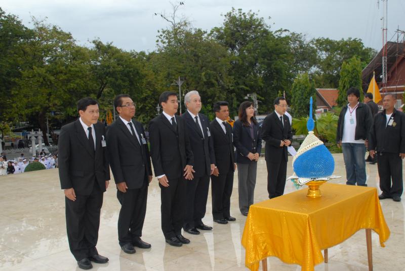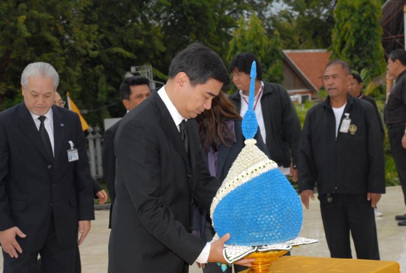 นายอภิสิทธิ์ เวชชาชีวะ ผู้นำฝ่ายค้านในสภาผู้แทนราษฎร พร้อมด้วยสมาชิกสภาผู้แทนราษฎร วางพานประดับพุ่มดอกไม้ถวายราชสักการะพระบรมราชานุสาวรีย์พระบาทสมเด็จพระปกเกล้าเจ้าอยู่หัว เนื่องในโอกาสครบรอบ ๑๒๐ ปี