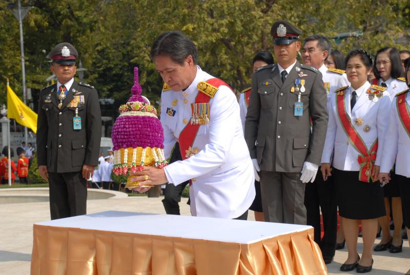 เลขาธิการสภาผู้แทนราษฎรพร้อมด้วยข้าราชการสำนักงานฯ นำพานประดับพุ่มดอกไม้ถวายบังคมพระบรมราชานุสาวริย์พระบาทสมเด็จพระปกเกล้าเจ้าอยู่หัว