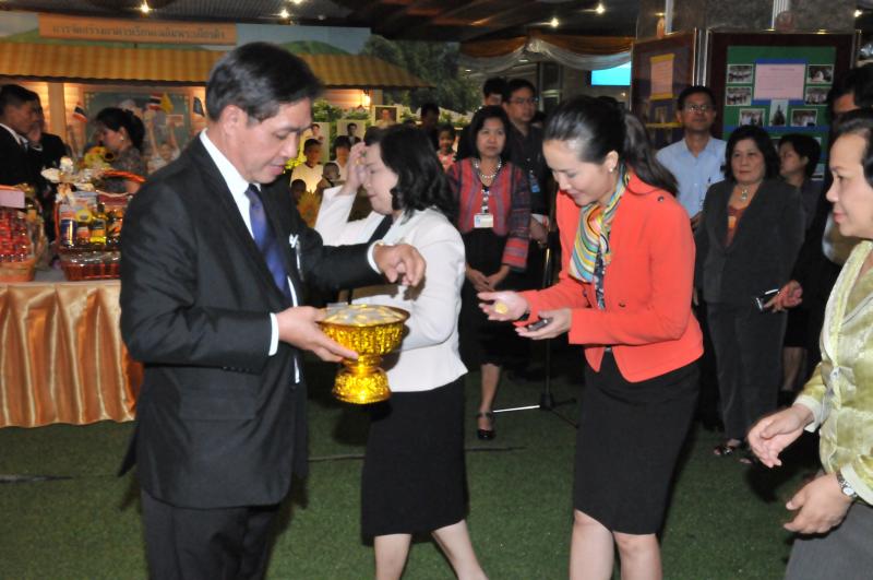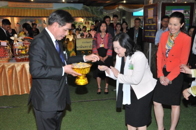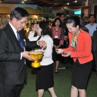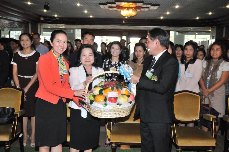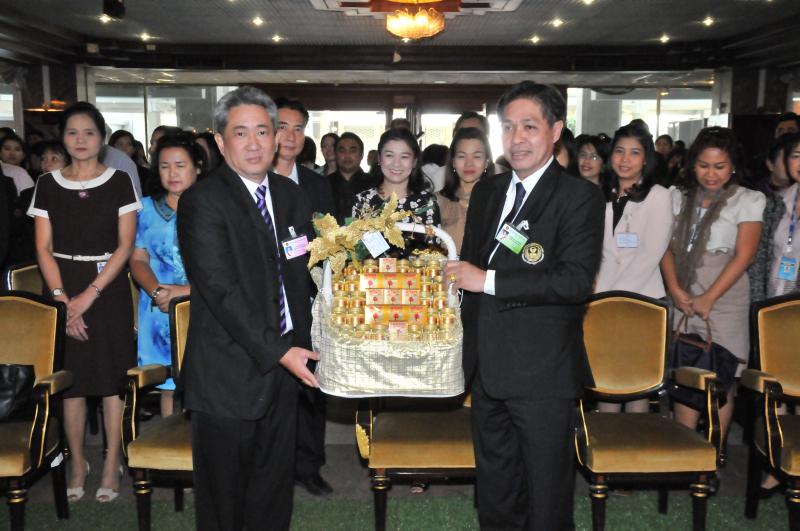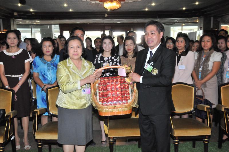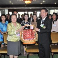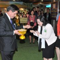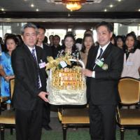 รับมอบกระเช้าจากนางบุษกร วรรธนะภูติ รองเลขาธิการสภาผู้แทนราษฎร