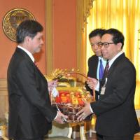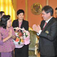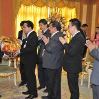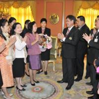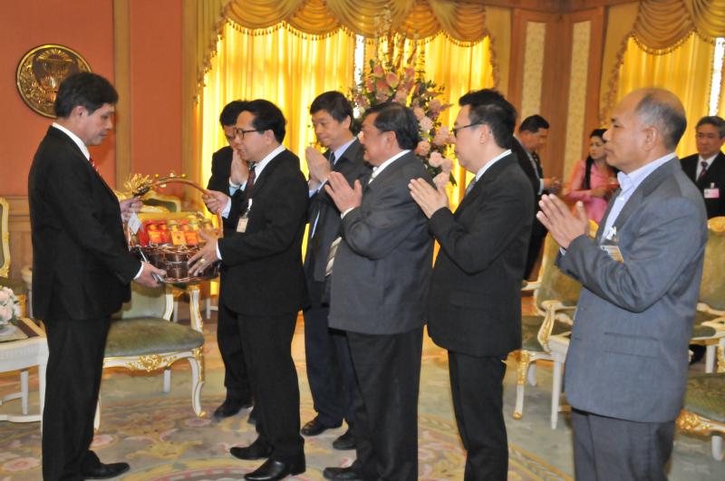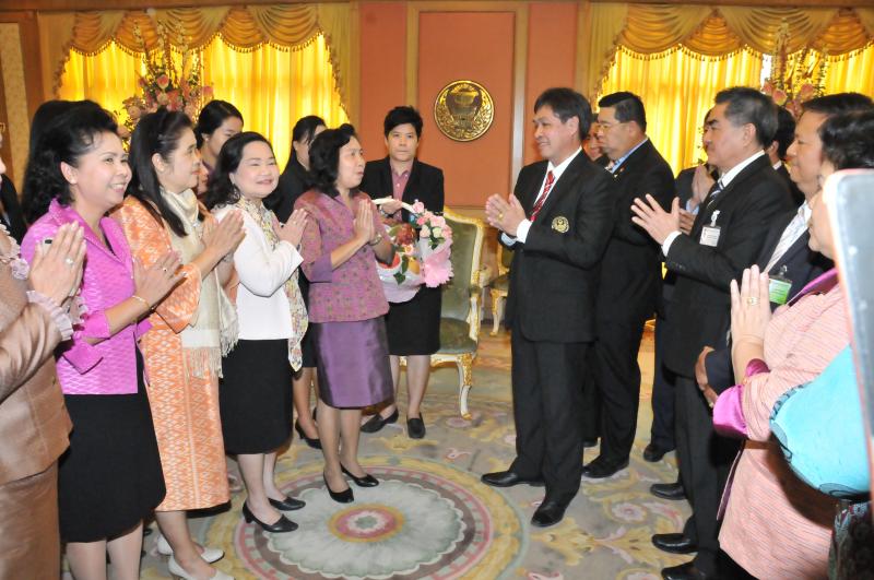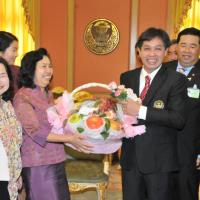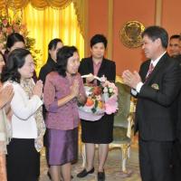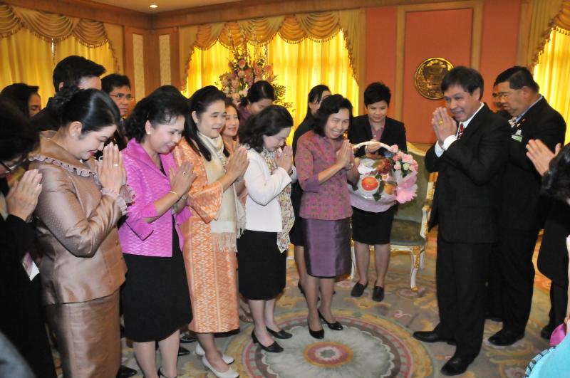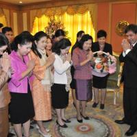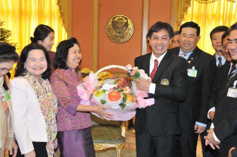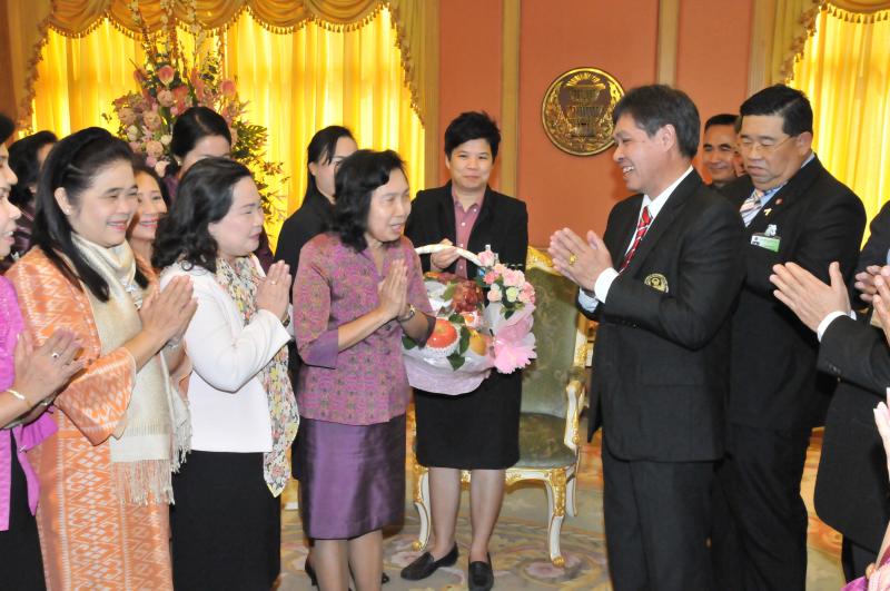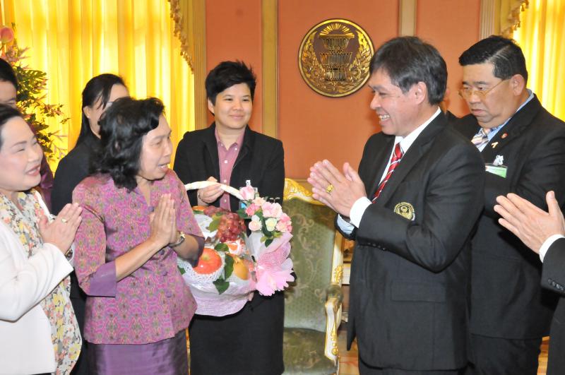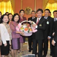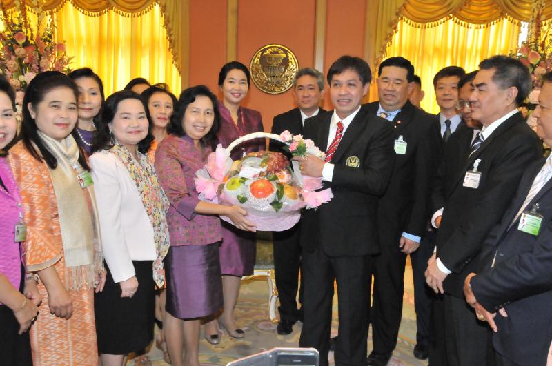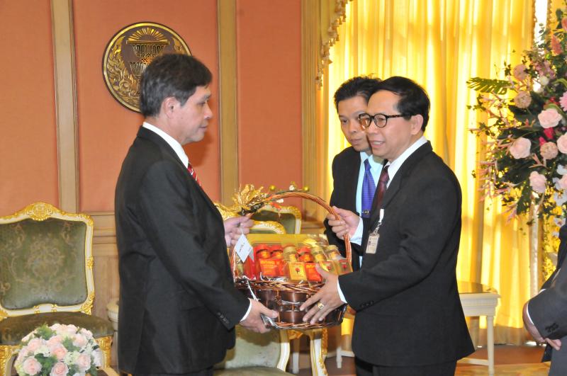 เลขาธิการสภาผู้แทนราษฎรรับมอบกระเช้าผลไม้จากคณะผู้บริหารระดับสูงในโอกาสวันขึ้นปีใหม่