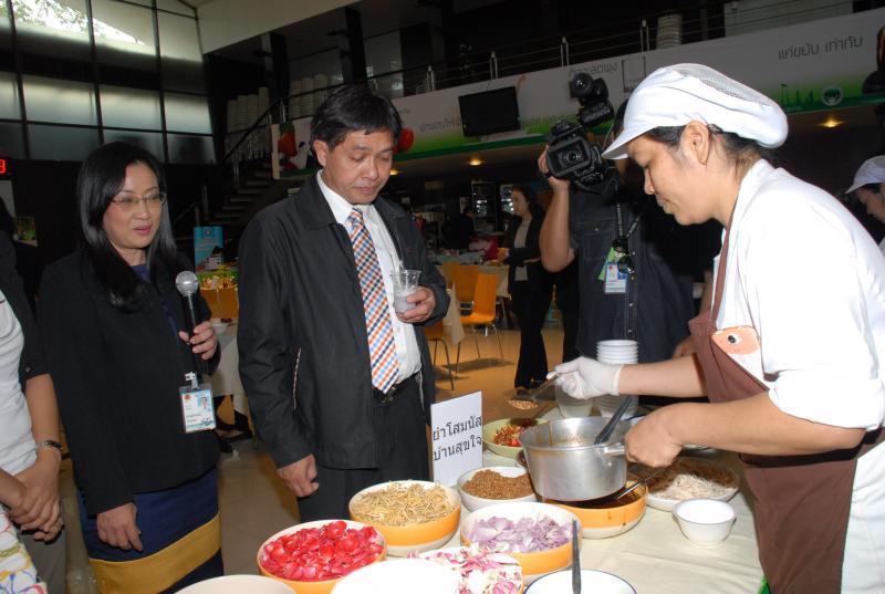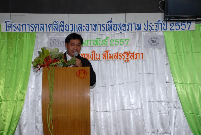 ตลาดสีเขียวและอาหารสุขภาพประจำปี ๒๕๕๗ โดยมี นางฐนิวรรณ กุลมงคล นายกสมาคมภัตตาคารไทย