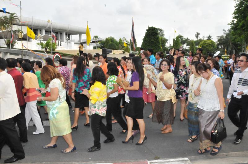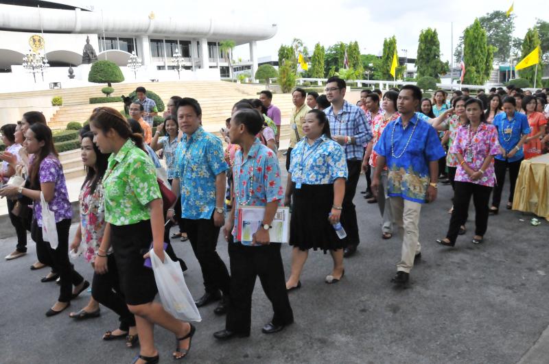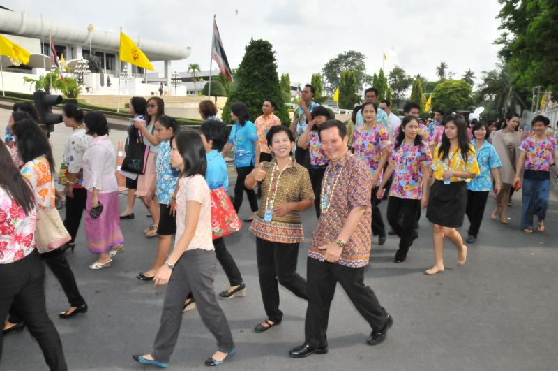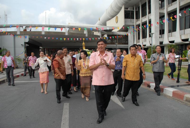 ข้าราชการ ลูกจ้างประจำ พนักงานราชการ ร่วมขบวนแห่กลองยาวอัญเชิญพระพุทธรูปประจำรัฐสภา