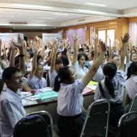วันพฤหัสบดีที่ ๒๖ มิถุนายน ๒๕๕๗ ณ หอประชุมเกียรติสุรนนท์ อ.เมือง จ.อุบลราชธานี นางสายทิพย์ เชาวลิตถวิล รองเลขาธิการสภาผู้แทนราษฎร เป็นประธานในพิธีเปิดโครงการ AIPA สัญจร ครั้งที่ ๓ ประจำปีงบประมาณ พ.ศ.๒๕๕๘ โดยมี นางชลลดา กันคล้อย ผู้อำนวยการสำนักองค์การระหว่างประเทศ เป็นผู้กล่าวรายงาน ทั้งนี้ นายสุวัจชัย สังคพัฒน์ นายอำเภอเมืองอุบลราชธานี นางสาวสิตาวีร์ ธีรวิรุฬห์ หัวหน้าสำนักงานรัฐสภาอุบลราชธานี และข้าราชการจากสำนักงานเขตพื้นที่การศึกษามัธยมศึกษา เขต ๒๙ เข้าร่วมพิธีเปิดโครงการฯ ซึ่งกลุ่มเป้าหมายของโครงการฯ ในครั้งนี้ คือ นักเรียนระดับมัธยมศึกษาตอนปลายจากโรงเรียนในจังหวัดอุบลราชธานี จำนวน ๒๐๐ คน |