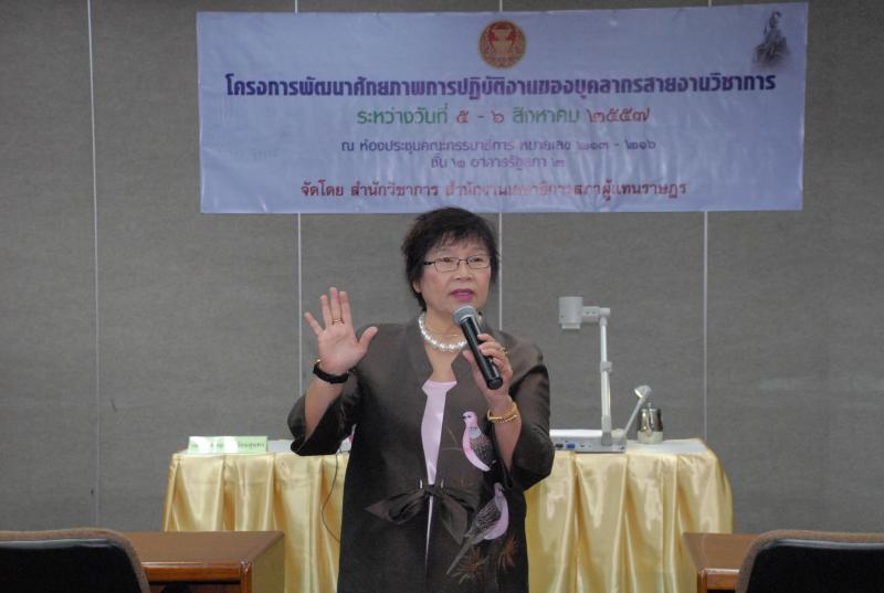 วันพุธที่ ๖ สิงหาคม ๒๕๕๗ เวลา ๐๙.๐๐ นาฬิกา ณ ห้องประชุมคณะกรรมาธิการหมายเลข ๒๑๓ – ๒๑๖ ชั้น ๒  อาคารรัฐสภา ๒ สำนักวิชาการ จัดโครงการพัฒนาศักยภาพการปฏิบัติงานของบุคลากรสายงานวิชาการ วันที่ ๒  ซึ่งมีการบรรยายหัวข้อ “การจัดทำเค้าโครงบทความและวิธีการรวบรวมข้อมูลด้านวิชาการ” โดย รศ.ดร.กาญจนา วัธนสุนทร อาจารย์พิเศษ มหาวิทยาลัยอัสสัมชัญ