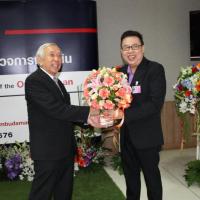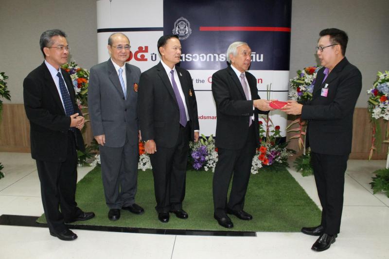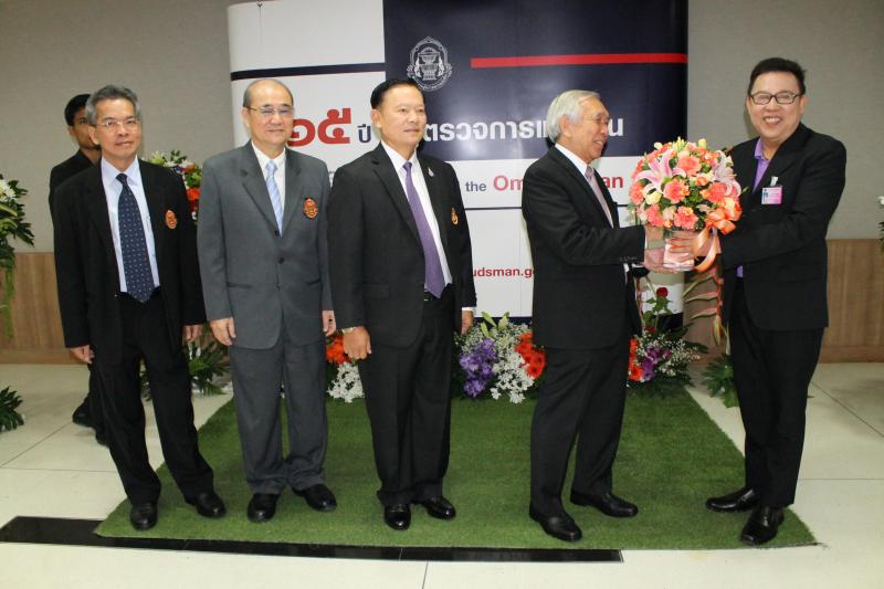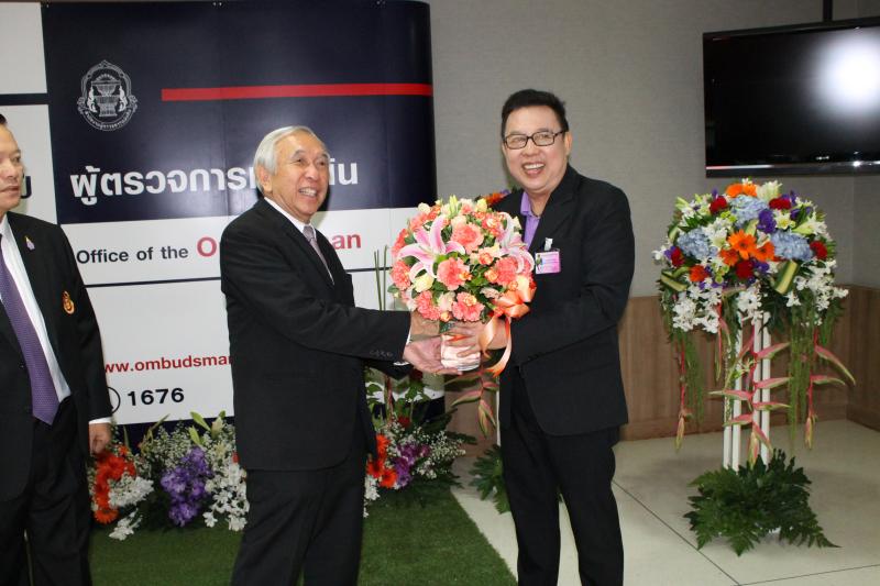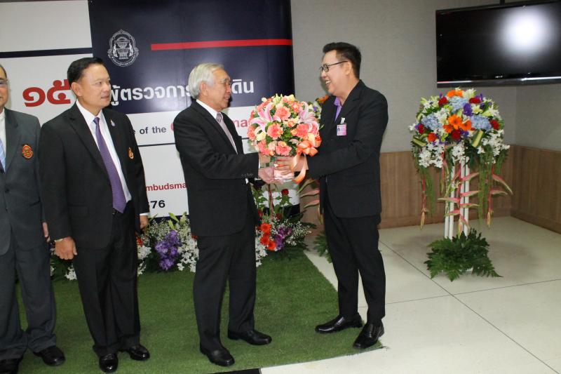ผู้อำนวยการสำนักประชาสัมพันธ์มอบแจกันดอกไม้แก่ประธานผู้ตรวจการแผ่นดินเนื่องในวันคล้ายวันสถาปนาสำนักงานผู้ตรวจการแผ่นดินครบรอบ ๑๕ ปี
