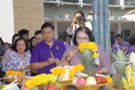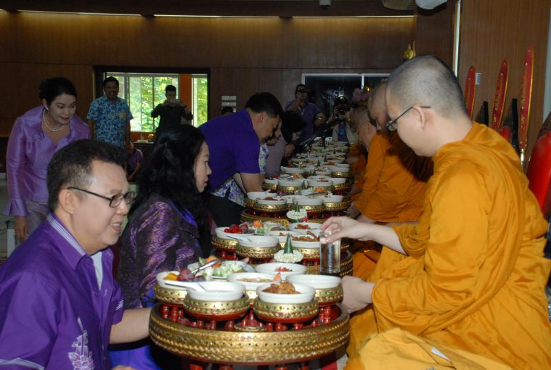 หลังจากนั้น ในเวลา ๑๐.๓๐ น. เลขาธิการสภาผู้แทนราษฎร ถวายภัตตาหารเพลแด่พระสงฆ์