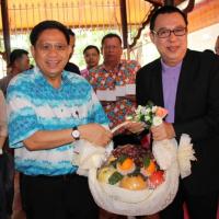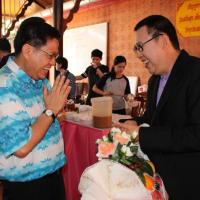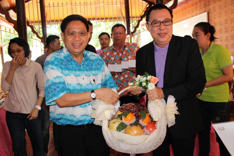 นายประวิช ตั้งใจมั่น ผู้อำนวยการสำนักประชาสัมพันธ์ มอบกระเช้าผลไม้ พร้อมหนังสืออำนวยพร อวยพรวันคล้ายวันเกิด แด่ นายสมศักดิ์ ปริศนานันทกุล อดีตรองประธานสภาผู้แทนราษฎร คนที่หนึ่ง สมัยปี