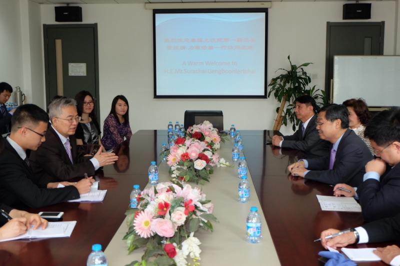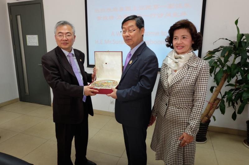 วันอาทิตย์ที่ ๒๖ เมษายน ๒๕๕๘ เวลา ๐๙.๓๐ นาฬิกา นายสุรชัย เลี้ยงบุญเลิศชัย รองประธาน สภานิติบัญญัติแห่งชาติ คนที่หนึ่ง ในฐานะหัวหน้าคณะผู้แทนสภานิติบัญญัติแห่งชาติ เข้าร่วมประชุมสนทนาแลกเปลี่ยนข้อมูลเกี่ยวกับการศึกษาภาษาจีนโดยเฉพาะ นักเรียนไทยที่มาศึกษาในมหาวิทยาลัยภาษาต่างประเทศปักกิ่ง (BFSU) โดยมี ศ.ดร. หัน เจิ้น ประธานคณะกรรมการบริหารกิจการมหาวิทยาลัย และคณะ ให้การต้อนรับ ณ มหาวิทยาลัยภาษาต่างประเทศปักกิ่ง สาธารณรัฐประชาชนจีน