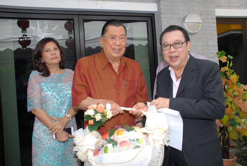 ผู้อำนวยการสำนักประชาสัมพันธ์ มอบกระเช้าผลไม้ พร้อมหนังสืออวยพรวันคล้ายวันเกิดแด่ พลเอกชวลิต ยงใจยุทธ อดีตผู้นำฝ่ายค้านในสภาผู้แทนราษฎร