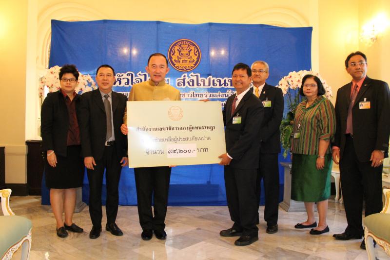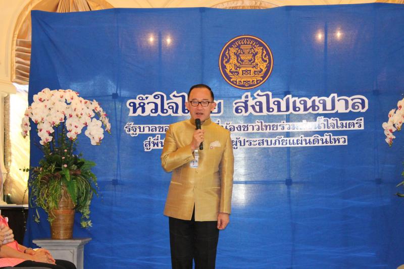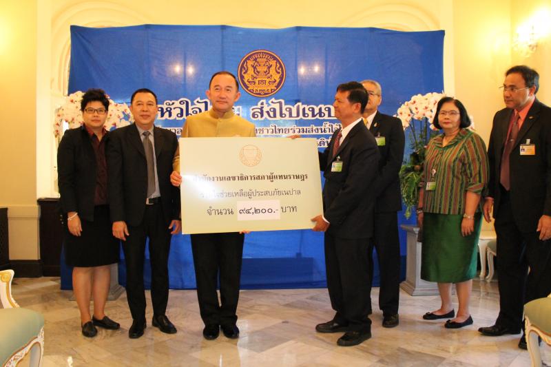 เลขาธิการสภาผู้แทนราษฎร พร้อมด้วยผู้บริหารสำนักงานเลขาธิการสภาผู้แทนราษฎรร่วมกันมอบเงินช่วยเหลือผู้ประสบธรณีพิบัติภัยแผ่นดินไหว ณ สหพันธ์สาธารณรัฐประชาธิปไตยเนปาล