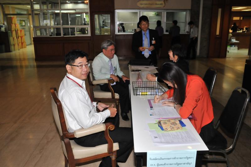 วันพุธที่ ๑ กรกฎาคม ๒๕๕๘ ณ บริเวณห้องโถง อาคารรัฐสภา ๑ นายสมชาติ ธรรมศิริ และนายสรศักดิ์ เพียรเวช ที่ปรึกษาด้านกฎหมาย ร่วมสมัครเป็นกรรมการข้าราชการฝ่ายรัฐสภา (ก.ร.ผู้แทนข้าราชการรัฐสภาสามัญ) แทนตำแหน่งที่ว่างจำนวน ๒ ตำแหน่ง โดยการรับสมัครและการเลือกผู้แทนข้าราชการรัฐสภาสามัญเป็นกรรมการข้าราชการรัฐสภาที่ว่าง เปิดรับสมัครตั้งแต่วันที่ ๑ - ๓ กรกฎาคม ๒๕๕๘ เวลา ๐๘.๓๐ - ๑๖.๓๐ นาฬิกา ผู้ที่มีความประสงค์จะสมัคร ให้ยื่นใบสมัครด้วยตนเอง พร้อมทั้งเตรียมเอกสารและหลักฐานให้ครบ ประกอบด้วย ใบสมัครตามแนบท้ายประกาศ รูปถ่ายหน้าตรงไม่สวมหมวกและไม่ใส่แว่นตาดำ ขนาด ๑ นิ้ว จำนวน ๒ รูป และสำเนาบัตรประจำตัวข้าราชการ หรือสำเนาบัตรประชาชน หรือสำเนาบัตรอื่นใดที่ทางราชการออกให้ ทั้งนี้ จะมีการเลือกกรรมการข้าราชการฝ่ายรัฐสภา (ก.ร.ผู้แทนข้าราชการรัฐสภาสามัญ) ในวันที่ ๑๖ กรกฎาคม ๒๕๕๘ ตั้งแต่เวลา ๐๘.๐๐ - ๑๕.๐๐ นาฬิกา ณ ห้องโถง ชั้น ๑ อาคารรัฐสภา ๑