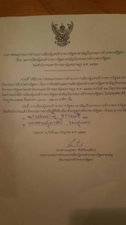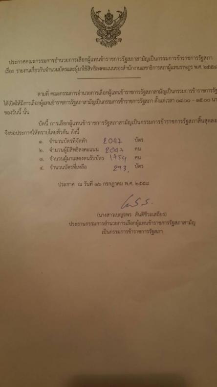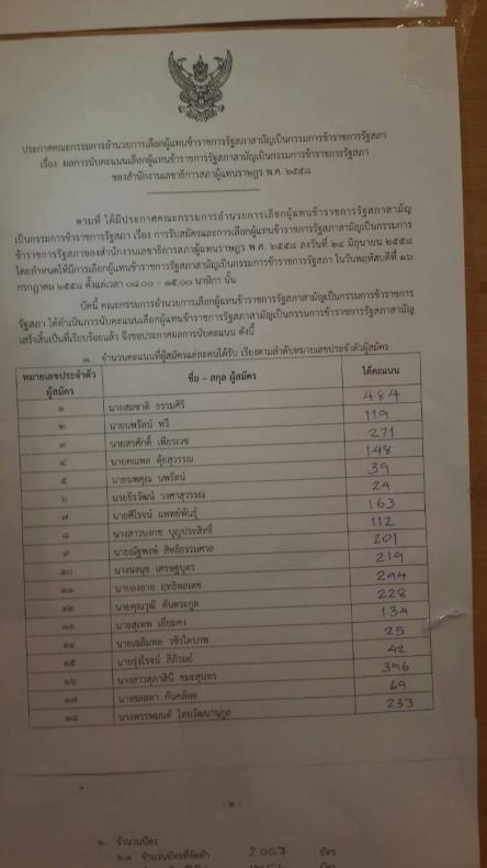 ประกาศผลการเลือกตั้งกรรมการข้าราชการรัฐสภา (ก.ร.)