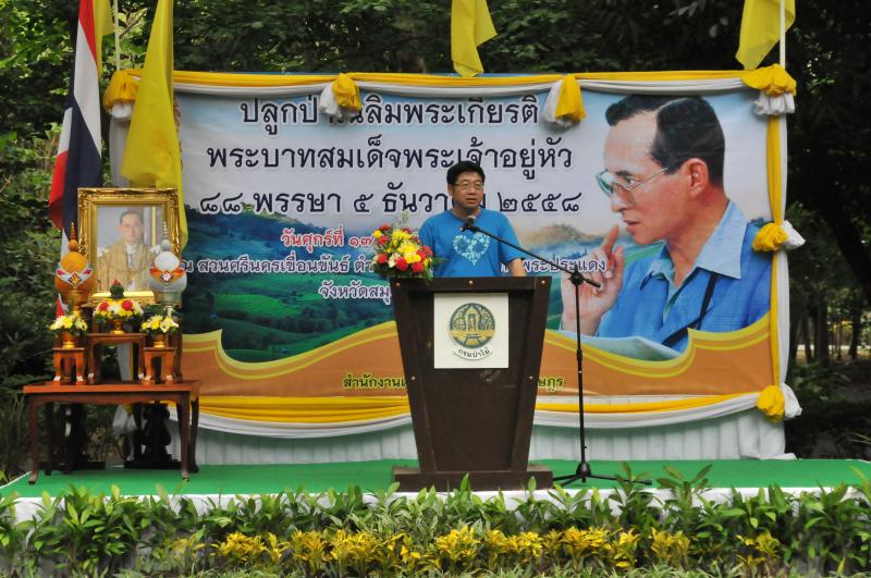 วันศุกร์ที่ ๑๗ กรกฎาคม ๒๕๕๘ เวลา ๐๙.๓๐ นาฬิกา ณ สวนศรีนครเขื่อนขันธ์ ตำบลบางกระเจ้า อำเภอพระประแดง จังหวัดสมุทรปราการ นายสมชาติ ธรรมศิริ ที่ปรึกษาด้านกฎหมาย เป็นประธานในพิธีเปิดโครงการปลูกป่าเฉลิมพระเกียรติพระบาทสมเด็จพระเจ้าอยู่หัว นางพรพิศ เพชรเจริญ ที่ปรึกษาด้านต่างประเทศ เป็นผู้กล่าวรายงาน และนายธีรภัทร ประยูรสิทธิ อธิบดีกรมป่าไม้ กล่าวต้อนรับ ในการนี้ นายสมชาติ ธรรมศิริ ที่ปรึกษาด้านกฎหมาย ในฐานะประธานกรรมการสโมสรรัฐสภา ได้มอบเงินสนับสนุนโครงการปลูกป่าปล่อยเต่าทะเลเฉลิมพระเกียรติฯ ด้วย ทั้งนี้ ผู้เข้าร่วมโครงการได้ร่วมกันปลูกต้นลำพู ต้นพิลังกาสา ต้นลำแพน และต้นมะสัก พร้อมทั้งปั่นจักรยานเพื่อชมพื้นที่รอบสวนศรีนครเขื่อนขันธ์ ซึ่งเป็นพื้นที่โอเอซิสที่เป็นแหล่งผลิตออกซิเจนและเป็นปอดให้ชาวกรุงเทพมหานคร |