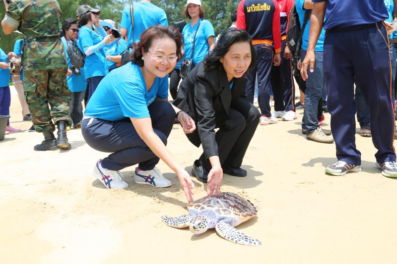 โครงการปล่อยเต่าทะเลเฉลิมพระเกียรติพระบาทสมเด็จพระเจ้าอยู่หัว โดยมีนางพรพิศ เพชรเจริญ
