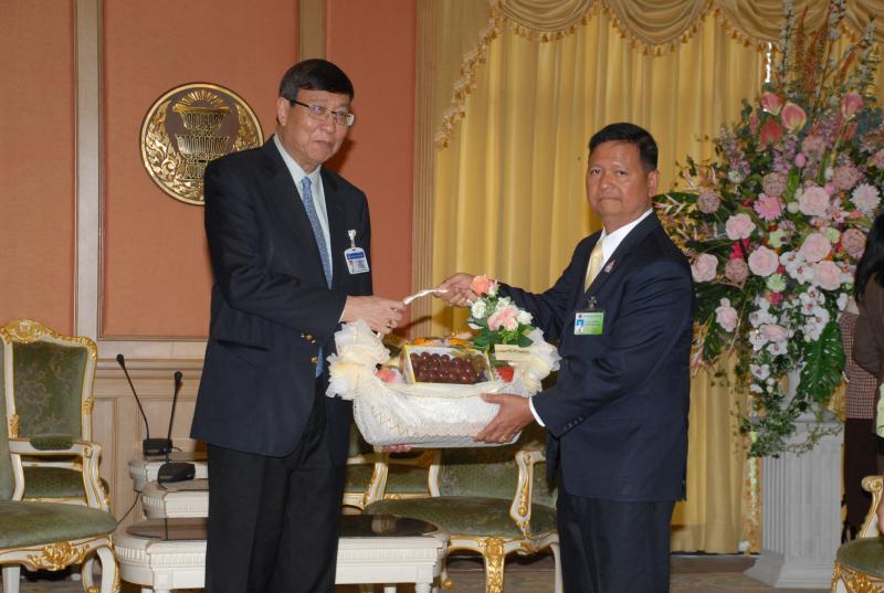 มอบกระเช้าผลไม้แด่ ศาสตราจารย์พิเศษ พรเพชร พิชิตชลชัย  ประธานสภานิติบัญญัติแห่งชาติ