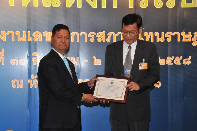 วันพุธที่ ๒ กันยายน ๒๕๕๘ เวลา ๑๐.๓๐ นาฬิกา ณ บริเวณห้องโถง อาคารรัฐสภา ๑ นายจเร พันธุ์เปรื่อง เลขาธิการสภาผู้แทนราษฎร เป็นประธานในพิธีมอบรางวัลยกย่อง ชมเชย และเชิดชูเกียรติสำหรับบุคคล หน่วยงาน โครงการที่่ส่งเสริมการจัดการความรู้ของสำนักงานเลขาธิการสภาผู้แทนราษฎร โดยมี รางวัลต่าง ๆ ดังนี้