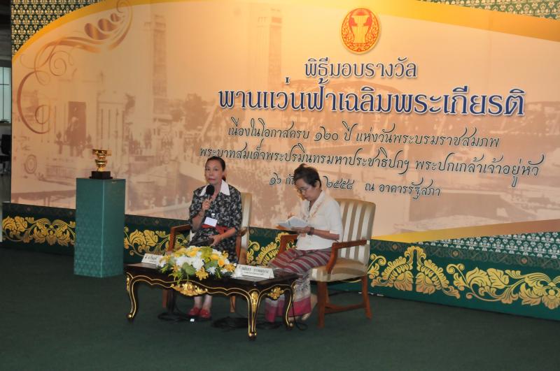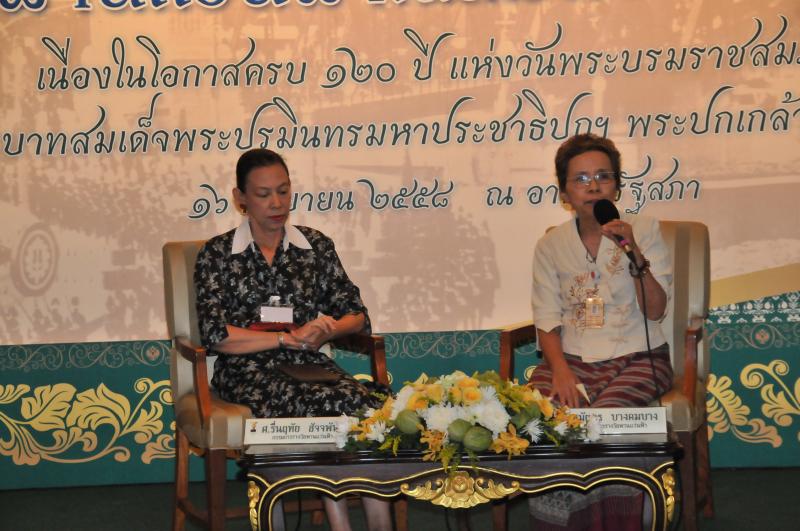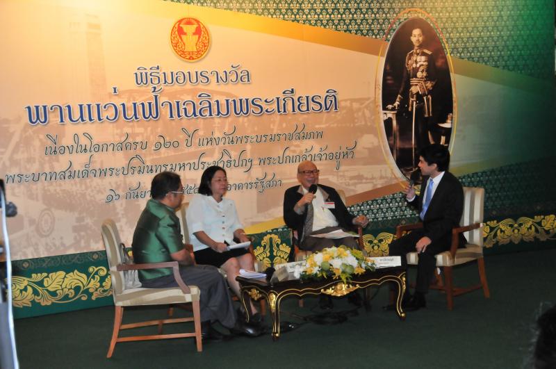 สำนักงานเลขาธิการสภาผู้แทนราษฎร จัดพิธีมอบรางวัลพานแว่นฟ้าเฉลิมพระเกียรติ เนื่องในโอกาสครบรอบ ๑๒๐ ปี แห่งวันพระบรมราชสมภพ พระบามสมเด็จพระปรมินทรมหาประชาธิปกฯ พระปกเกล้าอยู่หัว ในวันพุธที่ ๑๖ กันยายน ๒๕๕๘ เวลา ๐๙.๓๐ นาฬิกา ณ บริเวณห้องโถงชั้นล่าง อาคารรัฐสภา ๑ มีการเสวนา หัวข้อ "เรื่องเล่า ประชาธิปกฯ ธรรมราชา" โดย รองศาสตราจารย์ หม่อมราชวงศ์พฤทธิสาณ ชุมพล ดร.ปานเทพ ลาภเกษร และนางสาววิกัลย์ พงศ์พนิตานนท์ ดำเนินการเสวนา โดยพิธีกรจากสถานีวิทยุโทรทัศน์รัฐสภา จากนั้นในเวลา ๑๑.๐๐ นาฬิกา มีการถกแถลง หัวข้อ "ข้อสังเกตจากคณะกรรมการรางวัลพานแว่นฟ้า" โดย นางชมัยภร บางคมบาง และศาสตราจารย์รื่นฤทัย สัจจพันธุ์