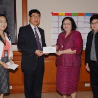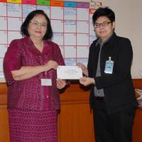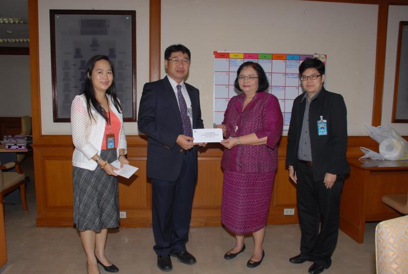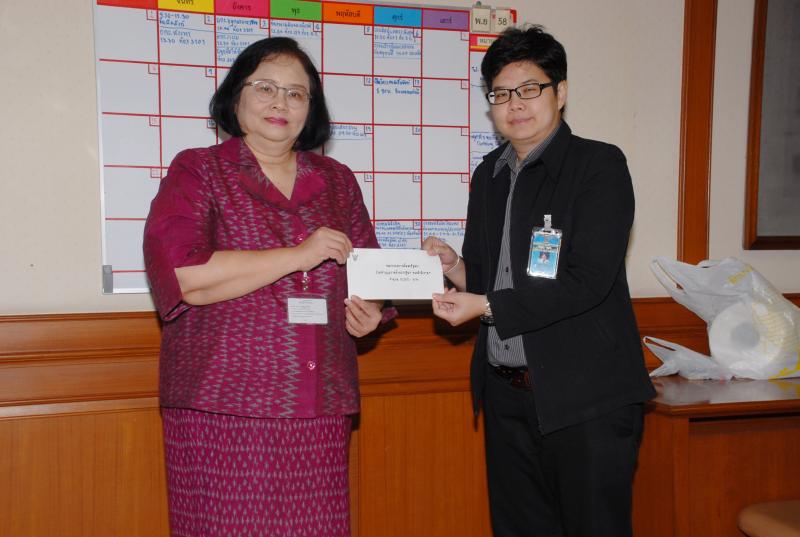 นางสายทิพย์ เชาวลิตถวิล รักษาราชการแทนเลขาธิการสภาผู้แทนราษฎร รับมอบเงินจากประธานกรรมการสโมสรรัฐสภา เพื่อร่วมทำบุญในการถวายผ้าพระกฐินพระราชทาน ประจำปี ๒๕๕๘