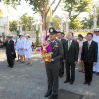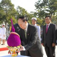 วันพฤหัสบดีที่ ๑๐ ธันวาคม ๒๕๕๘ เวลา ๑๐.๑๕ นาฬิกา ณ พระบรมราชานุสาวรีย์พระบาทสมเด็จพระปกเกล้าเจ้าอยู่หัว พลเรือเอก หม่อมเจ้าปุสาณ สวัสดิวัตน์ ประธานกรรมการมูลนิธิพระบรมราชานุสรณ์พระบาทสมเด็จพระปกเกล้าเจ้าอยู่หัวและสมเด็จพระนางเจ้ารำไพพรรณี พร้อมคณะกรรมการฯ นำพานประดับพุ่มดอกไม้ถวายบังคมพระบรมราชานุสาวรีย์พระบาทสมเด็จพระปกเกล้าเจ้าอยู่หัว ในนาม มูลนิธิพระบรมราชานุสรณ์พระบาทสมเด็จพระปกเกล้าเจ้าอยู่หัวฯ เนื่องในวันพระราชพิธีฉลองวันพระราชทานรัฐธรรมนูญแห่งราชอาณาจักรไทย