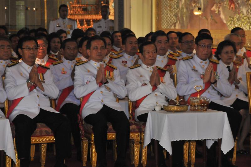 หลังจากนั้น สมเด็จพระบรมโอรสาธิราช เจ้าฟ้ามหาวชิราลงกรณ สยามมกุฎราชกุมาร เสด็จพระราชดำเนินโดยรถยนต์พระที่นั่งไปยังพระที่นั่งอนันตสมาคม ทรงจุดธูปเทียนเครื่องนมัสการ พระสงฆ์ ๑๕ รูป เจริญพระพุทธมนต์ จบแล้ว ทรงประเคนผ้าไตร และจตุปัจจัยไทยธรรม พระสงฆ์ถวายอนุโมทนา ถวายอดิเรก เสด็จพระราชดำเนินกลับ