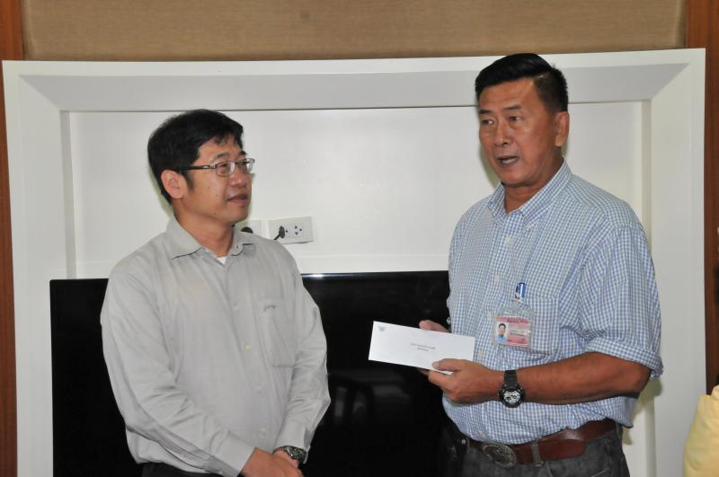 ชั้น ๑  อาคารรัฐสภา ๑ นายสมชาติ ธรรมศิริ ที่ปรึกษาด้านกฎหมายมอบเงินให้ นายฉลาด จันทร์เดช