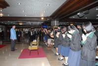 ในเวลา ๐๙.๐๐ น. นายพีระศักดิ์ พอจิต รองประธานสภานิติบัญญัติแห่งชาติ คนที่สอง ให้การต้อนรับ