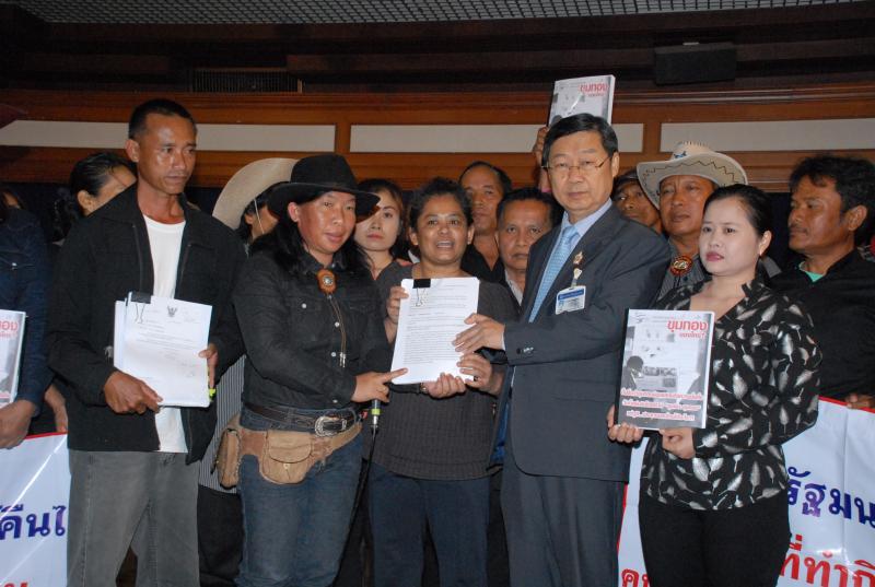 นายสุรชัย เลี้ยงบุญเลิศชัย รองประธานสภานิติบัญญัติ คนที่หนึ่ง รับยื่นหนังสือจากตัวแทนกลุ่มประชาคมปฏิรูปทรัพยากรและทองคำ