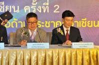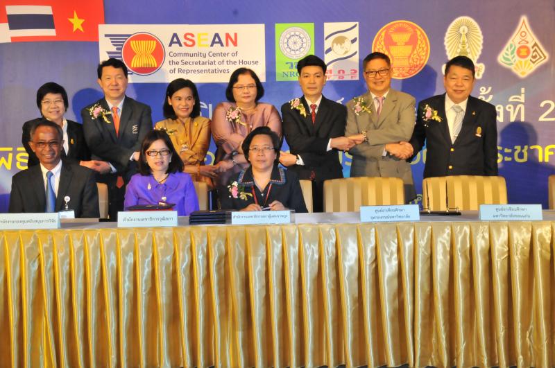 ร่วมมือกับเครือข่ายด้านประชาคมอาเซียน ๗ หน่วยงาน ได้แก่