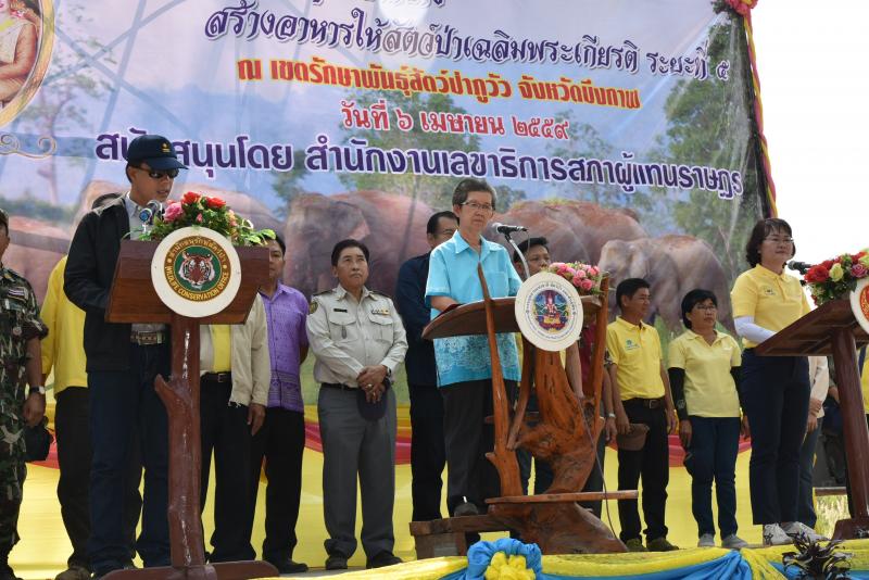 เป็นประธานในพิธีเปิดโครงการปลูกพืชให้ช้างฯ  โดยมีนางพรพิศ เพชรเจริญ รองเลขาธิการ