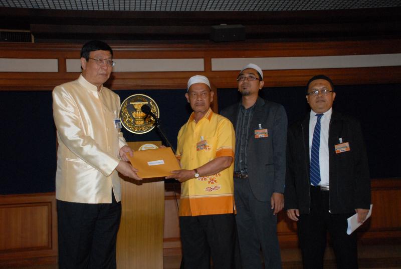 ศาสตราจารย์พิเศษพรเพชร วิชิตชลชัย ประธานสภานิติบัญญัติแห่งชาติ รับยื่นหนังสือจาก นายแวสะมะแอ