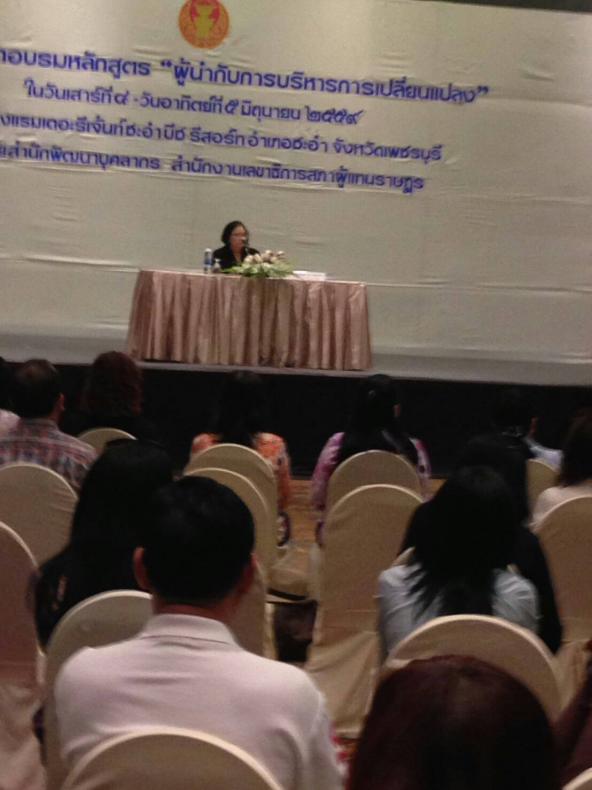 | วันเสาร์ที่ ๔ มิ.ย. ๕๙ เวลา ๑๑.๓๐ น ณ โรงแรมเดอะรีเจ้นท์ ชะอำบีช รีสอร์ท อ. ชะอำ จ.เพชรบุรี นางสายทิพย์ เชาวลิตถวิล เลขาธิการสภาผู้แทนราษฎร เป็นประธานในพิธีเปิดโครงการฝึกอบรมหลักสูตร "ผู้นำกับการบริหารการเปลี่ยนแปลง" กล่าวรายงานโดยนายยุทธนา สำเภาเงิน ผู้อำนวยการสำนักพัฒนาบุคคลากร ซึ่งวัตถุประสงค์ของการจัดงานเพื่อให้ทราบและตระหนักถึงความสำคัญของการเปลี่ยนแปลงที่ส่งผลกระทบต่อการดำเนินงานขององค์กร สามารถกำหนดแนวทางและขั้นตอนที่เป็นระบบในการบริหารการเปลี่ยนแปลง ให้สามารถนำไปประยุกต์ใช้ และผลักดันให้เกิดความร่วมมือในการดำเนินงาน อันจะทำให้เกิดการบริหารได้อย่างมีประสิทธิภาพ |