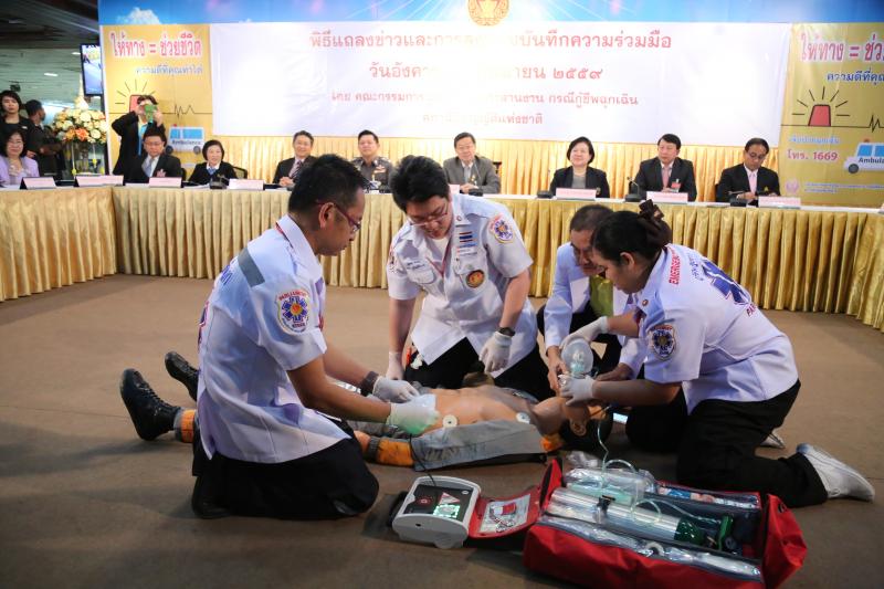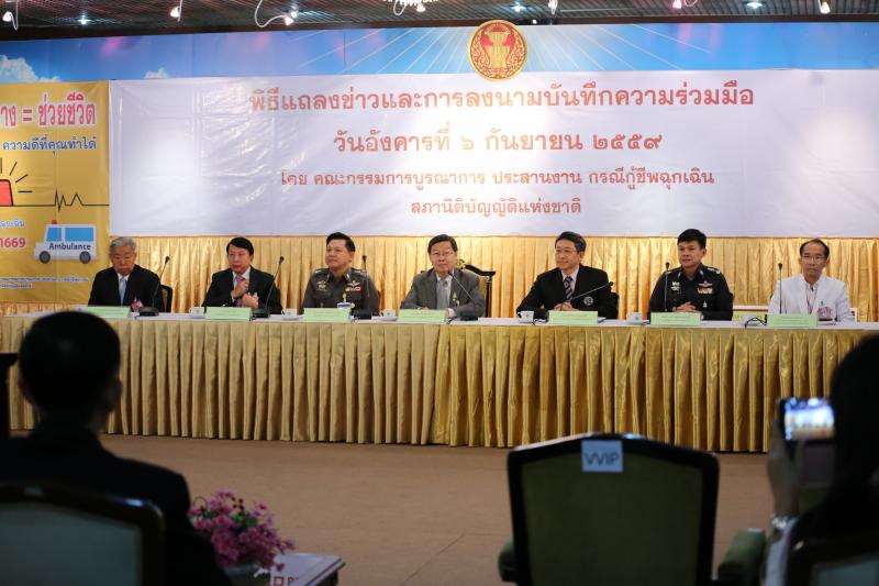 พิธีลงนามบันทึกความร่วมมือระหว่างคณะกรรมการบูรณาการ ประสานงาน กรณีกู้ชีพฉุกเฉิน
