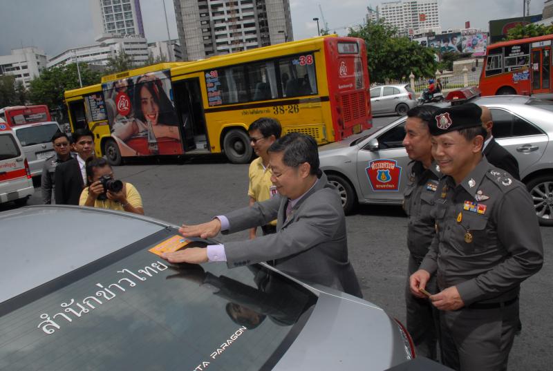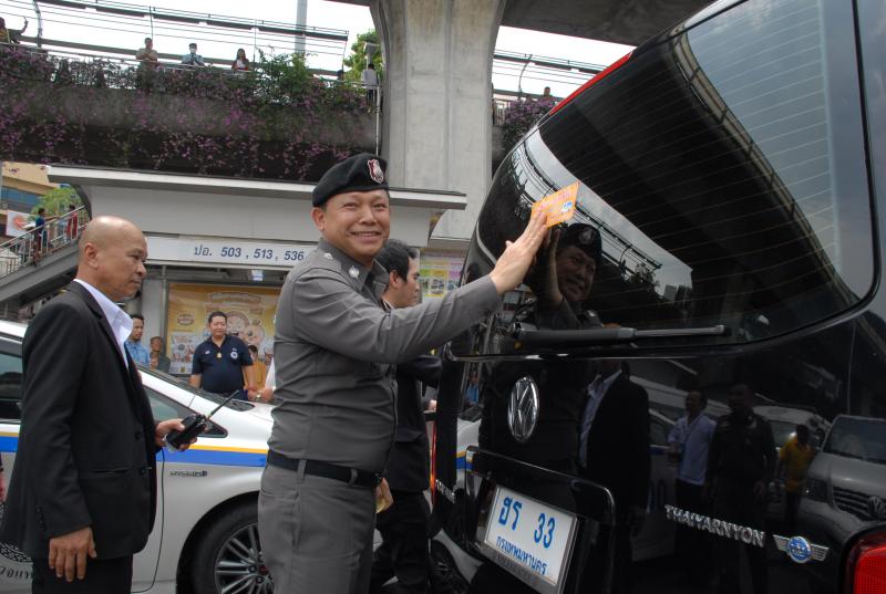 พร้อมทั้งร่วมแจกสติกเกอร์และโปสเตอร์ให้ทาง = ให้ชีวิต ความดีที่คุณทำได้ เพื่อรณรงค์แผนการจราจร