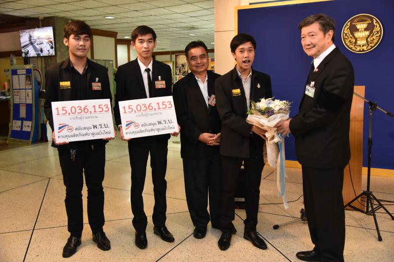 ๑๕,๐๓๖,๑๕๓ รายชื่อ ที่ได้ลงชื่อสนับสนุนร่างกฎหมายควบคุมผลิตภัณฑ์ยาสูบฉบับใหม่ เพื่อ