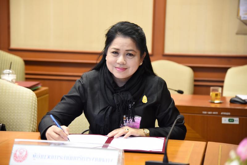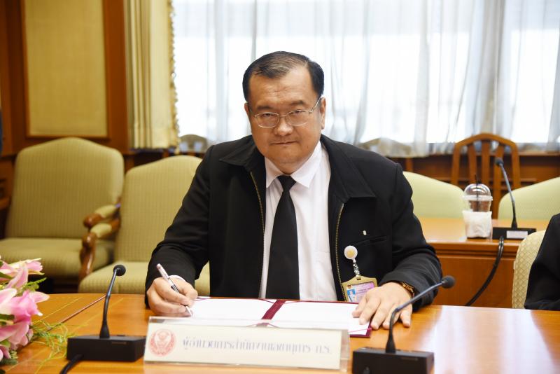 นางจันทร์เพ็ญ อานามวัฒน์ ที่ปรึกษาด้านระบบงานนิติบัญญัติ ลงนามคำรับรองการปฏิบัติราชการประจำปี พ.ศ. ๒๕๖๐ (ระดับสำนัก)