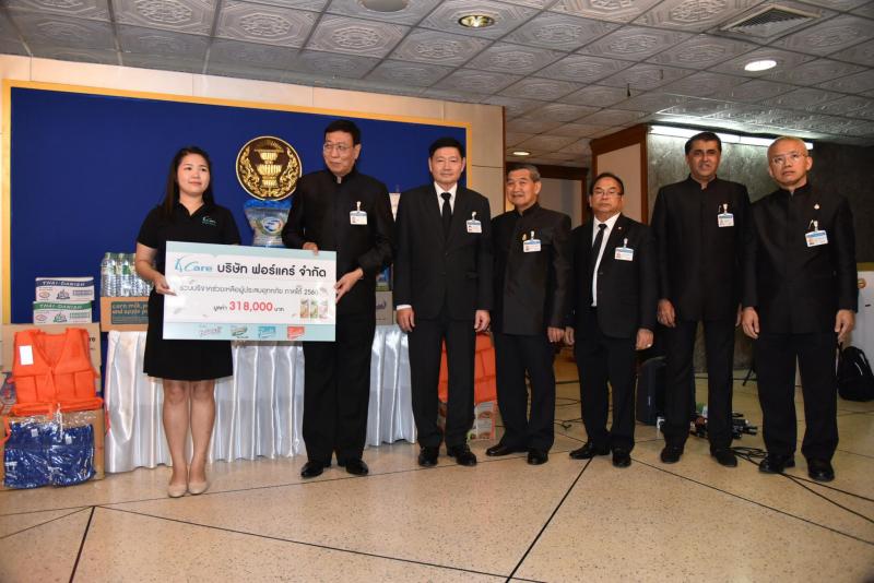 จำนวน ๑๘,๐๐๐ กล่อง น้ำผลไม้ต่าง ๆ และเงินที่ได้รับบริจาคจาก บริษัท เมืองไทยประกันภัย