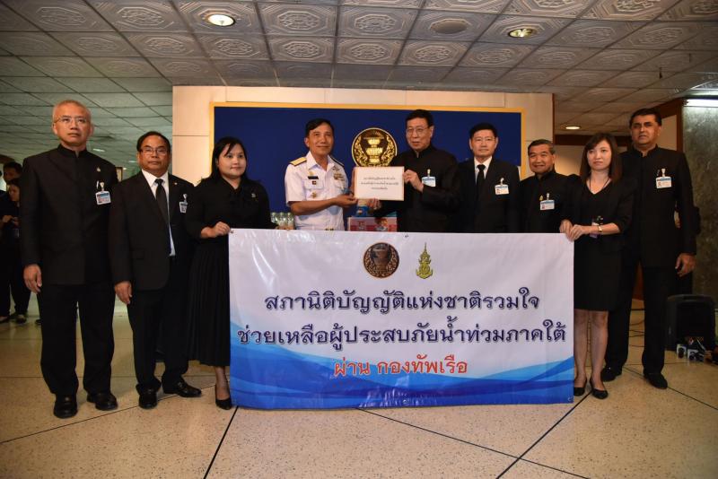 สภานิติบัญญัติแห่งชาติ รับมอบเงินและสิ่งของ เช่น ปลากระป๋อง น้ำดื่ม ข้าวสาร เสื้อชูชีพ